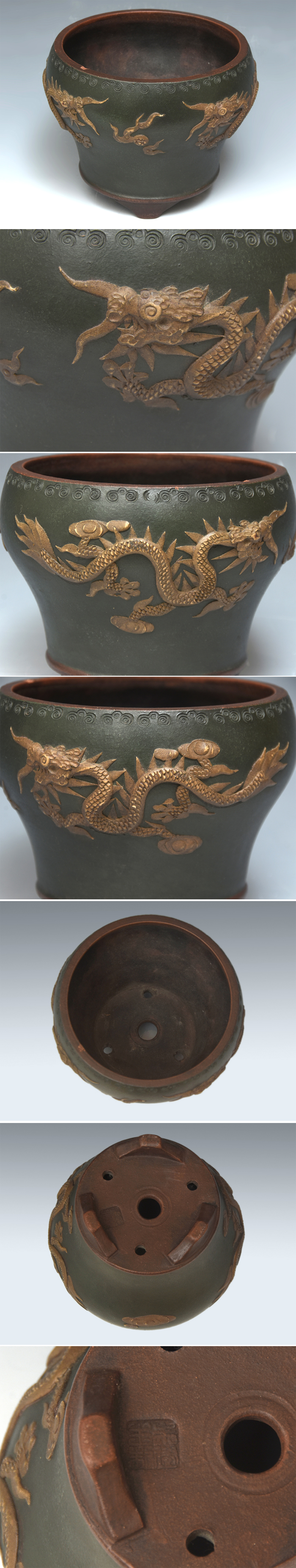 中国美術 時代 貼土龍紋鉢 浮彫 象嵌 植木鉢 古玩 古鉢 唐物 盆器 古盆器 |