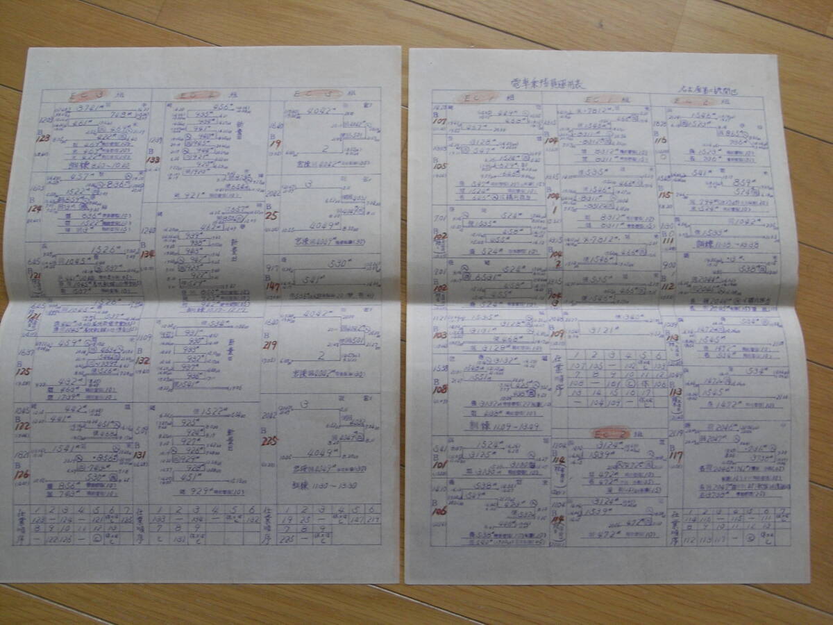 年代の記載はありませんが、一緒に保管されていたほかの多数の資料(現在当方で出品しております、昭和50年代前半の「名古屋第二機関区 電機乗務員運用表」)から同年代である昭和50年代前半かと推測しております(推測のため相違の際はご容赦ください)。