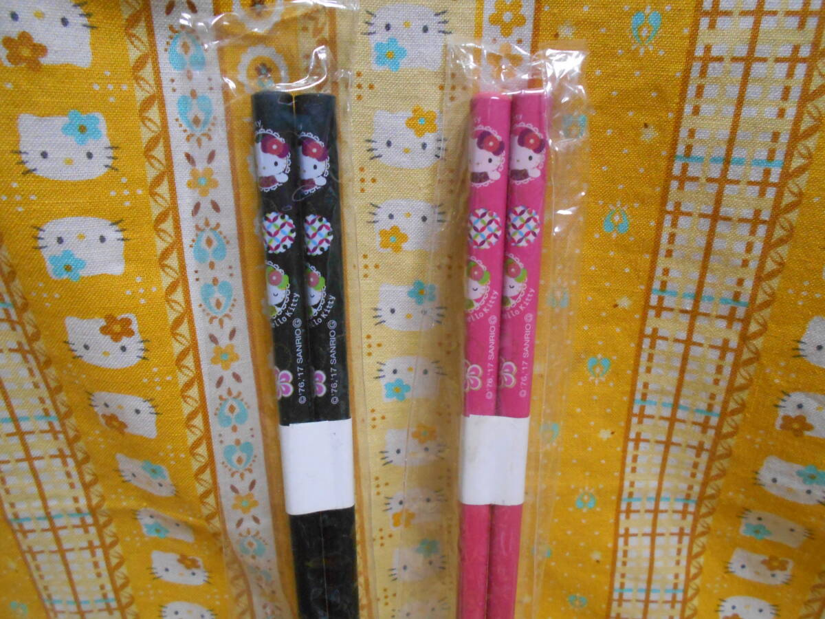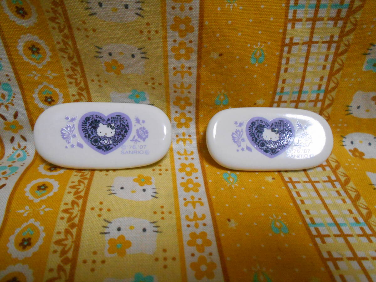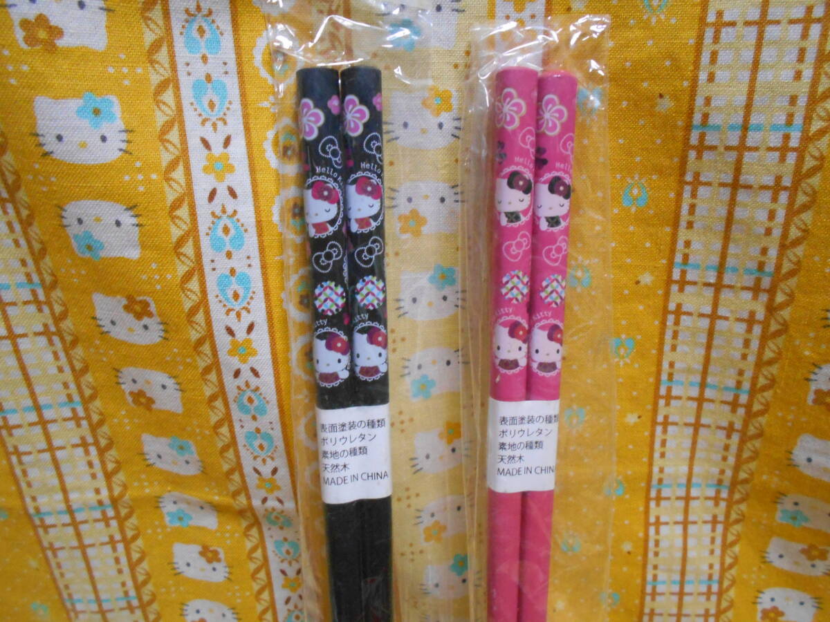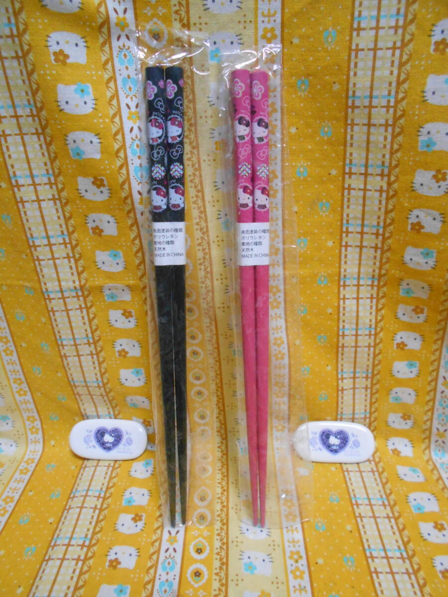 ♪キティ新品サンリオハローキティ天然木箸色違い2膳2017&陶器製ラベンダー色イラスト箸置き2個2007
