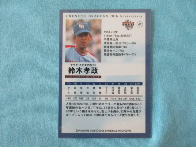 ★BBM 2006★〔47 鈴木孝政〕中日ドラゴンズ 70周年 記念カード トレカ♪