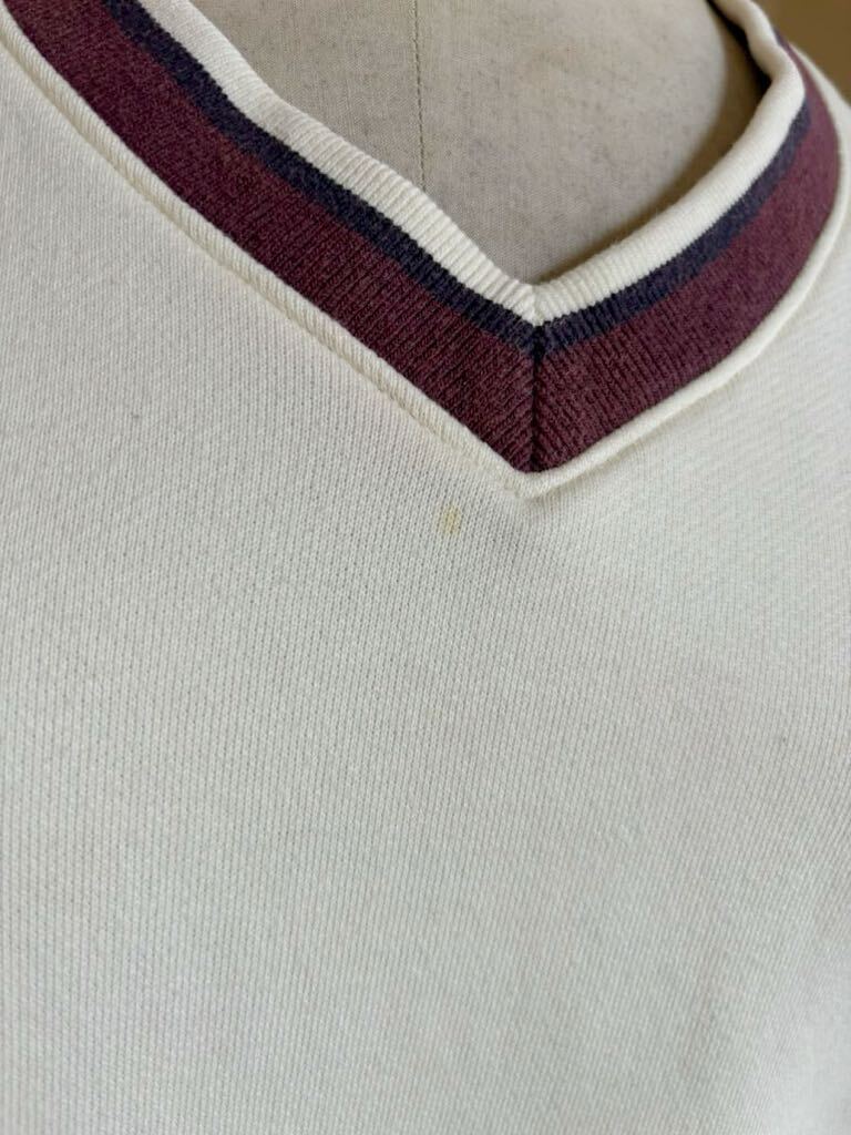 ダメージ箇所 :前見頃部Vネック下辺りに薄い点シミあり