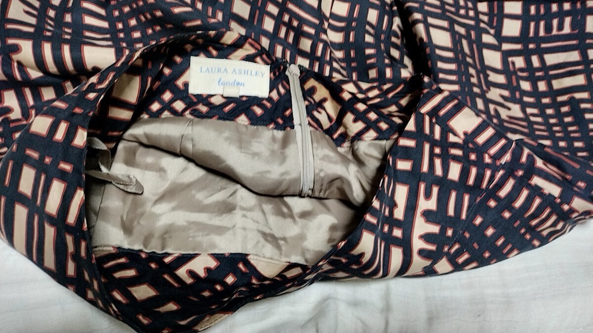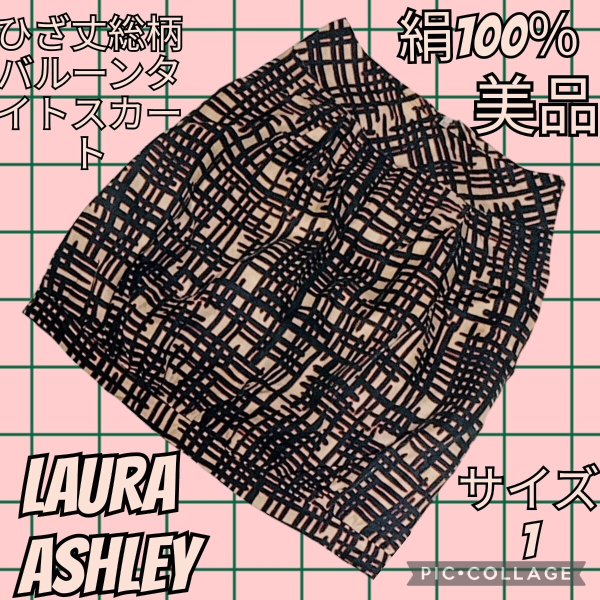 イギリスのファッションブランド、LAURA ASHLEY Londonのシルク100%総柄ひざ丈タイトスカートになります。