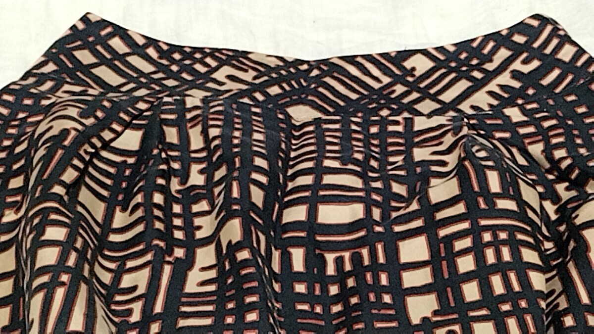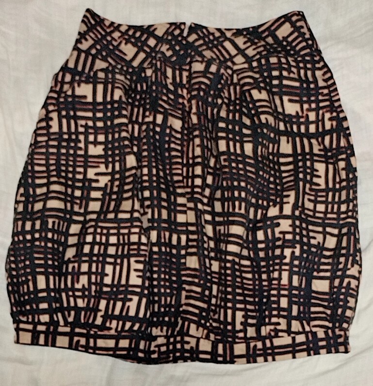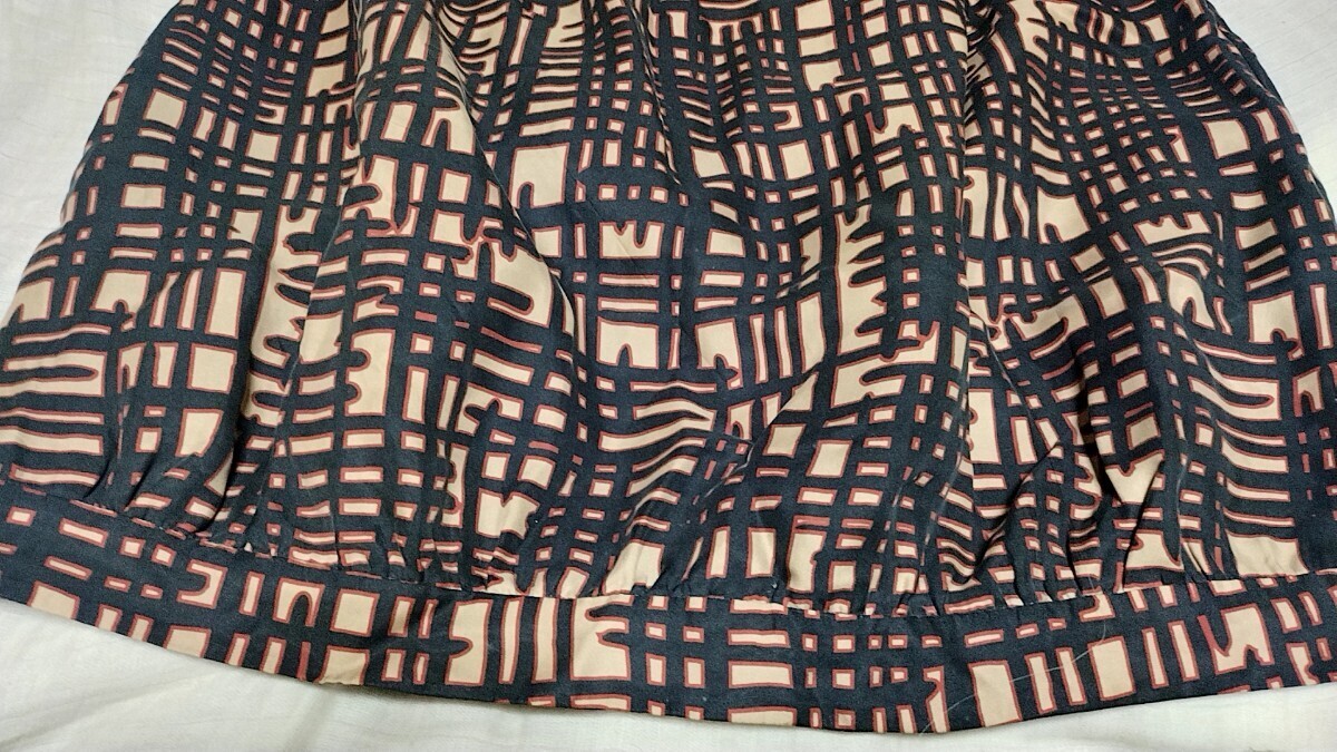 チェックのようなテキスタイルの生地とバルーン調のシルエットのデザインが特徴的☆