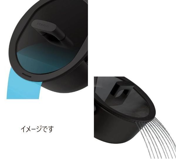 取り回しが静かなシリコン縁のガラス蓋。蓋をしたまま水切りのできるくぼみ付きです。
