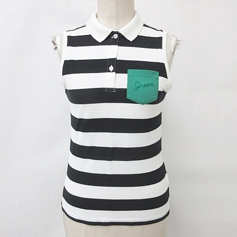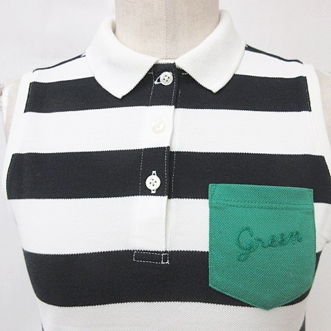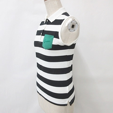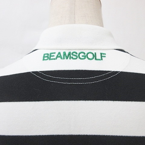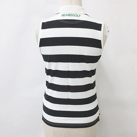 ビームスゴルフ BEAMS GOLF ポロシャツ ノースリーブ ボーダー 刺繍 鹿の子 白 黒 緑 ホワイト ブラック グリーン S レディース