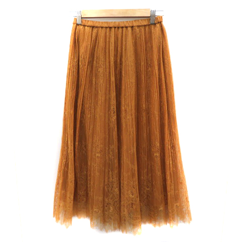 ナチュラルビューティーベーシック NATURAL BEAUTY BASIC プリーツスカート ロング丈 マキシ丈 チュールレース M キャメル レディース