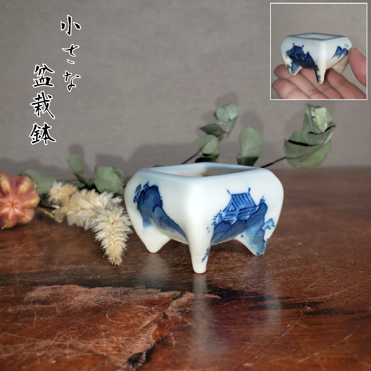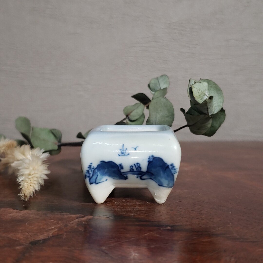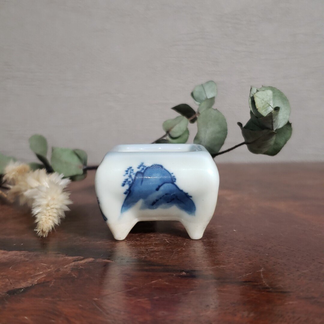 商品名 | 小さな盆栽鉢 染付 盆栽鉢 松 鉢植え 陶器製 小さい ミニサイズ 4cm×4cm×3cm 風景画 古い 骨董 植物 飾り | |||||||||||||||||||||||||