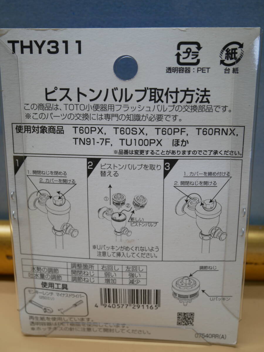 TOTO 小便器用 ピストンバルブ部(T60R型用)THY311 1箱(5入) 即決価格 | |||