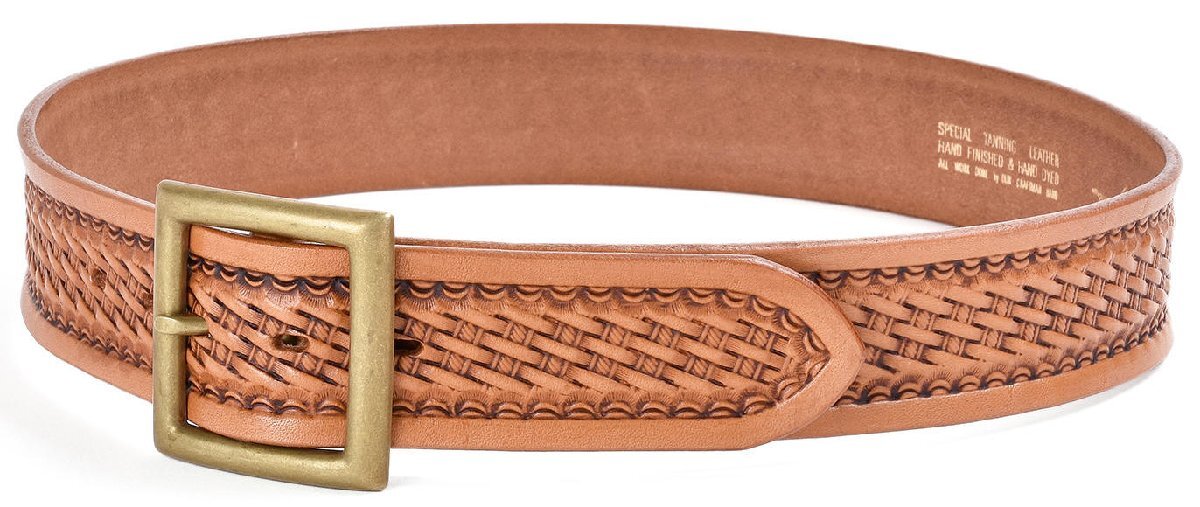 モデルは≪サドルレザー製 バスケットクラフト ギャリソンベルト≫、
