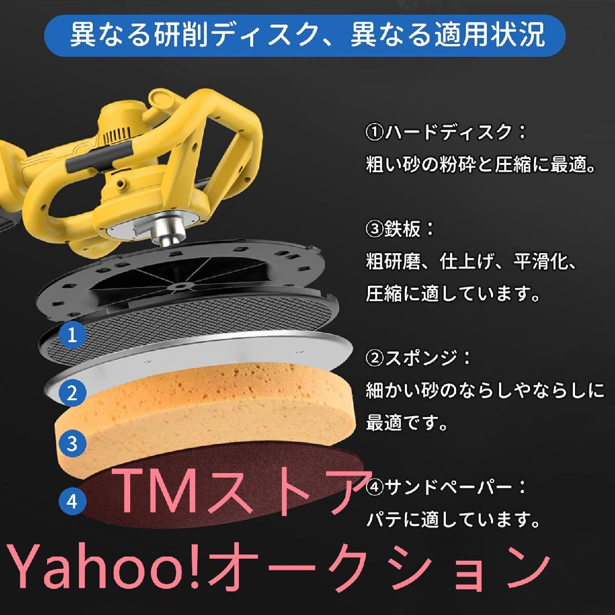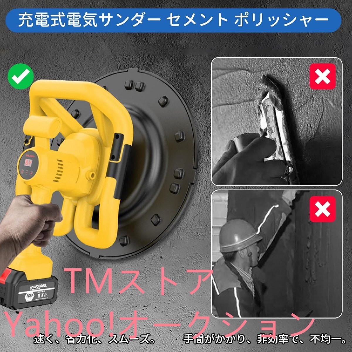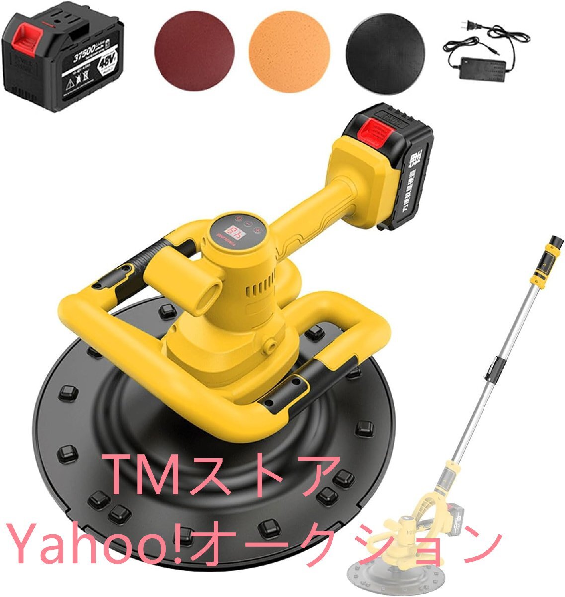 充電式 コンクリート研磨機 ウォールサンダ 壁面平滑化研磨機 大直径38cm 6速調整 37500mAh 伸縮可能な延長ロッド付き 両手で簡単施工
