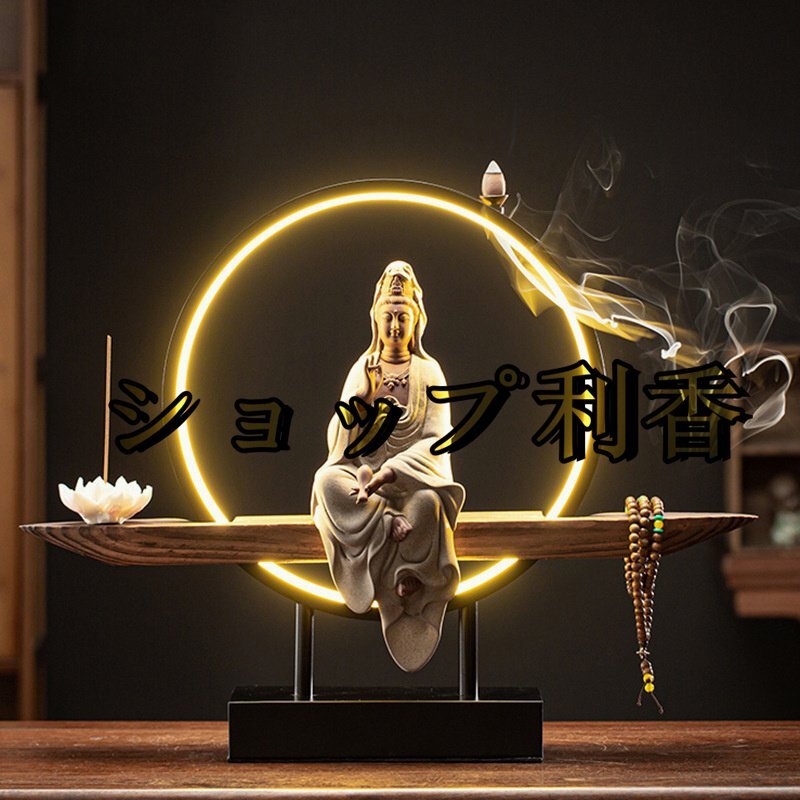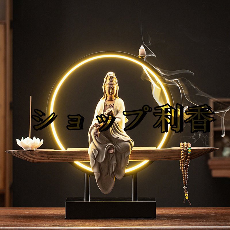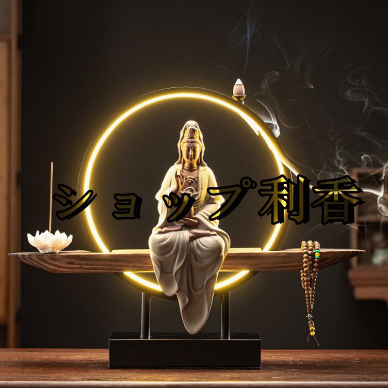 特売 新入荷 高級感溢れる 禅の置物 玄関リビング観音仏像陶器の町家アイデア逆流香 装飾品 工芸品 仏教美術