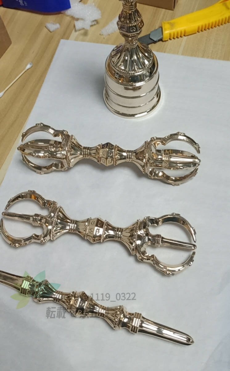 【密教法具 寺院用仏具】 弘法大師 真言宗 金剛杵 独鈷杵/三鈷杵/五鈷杵/ 3点セット 銅製磨き仕上げ 長さ23cm
