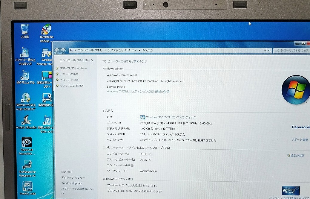 | 状態 | Win7 32bitリカバリしてあります リカバリーしなおしての64bitも可能 |