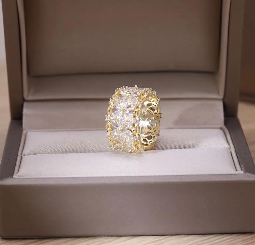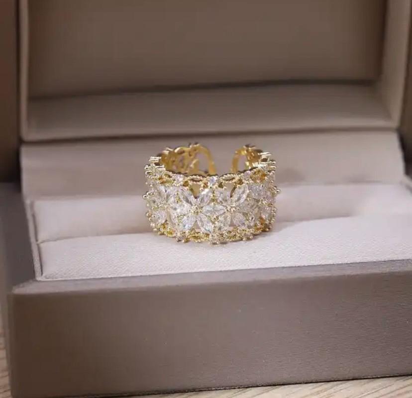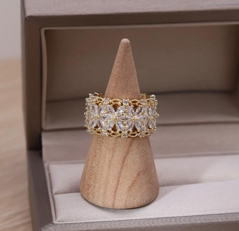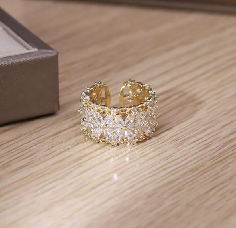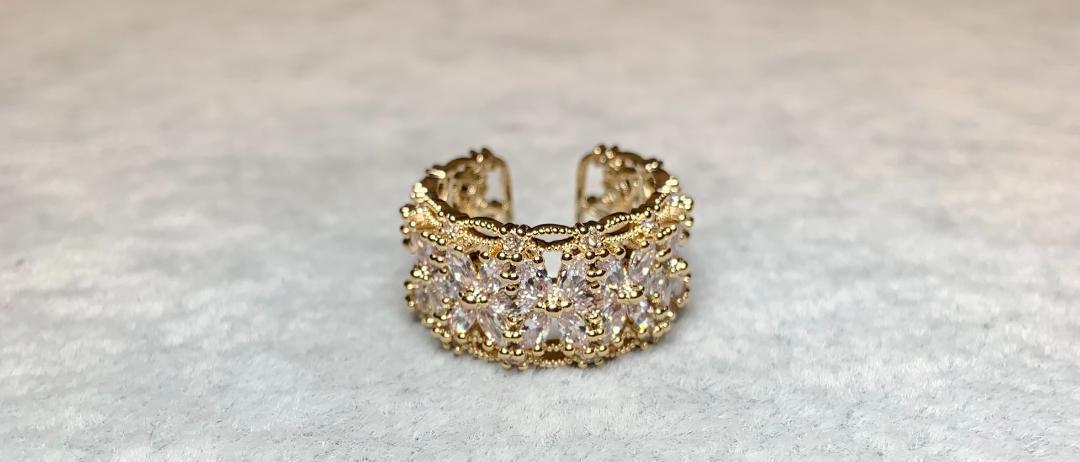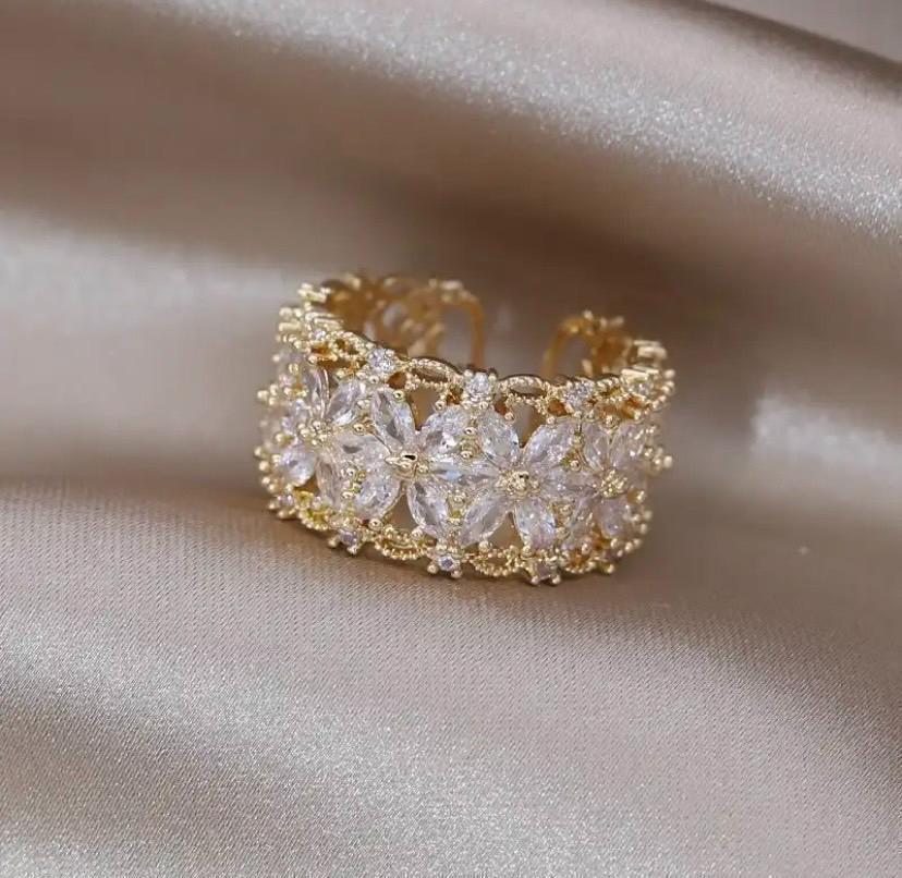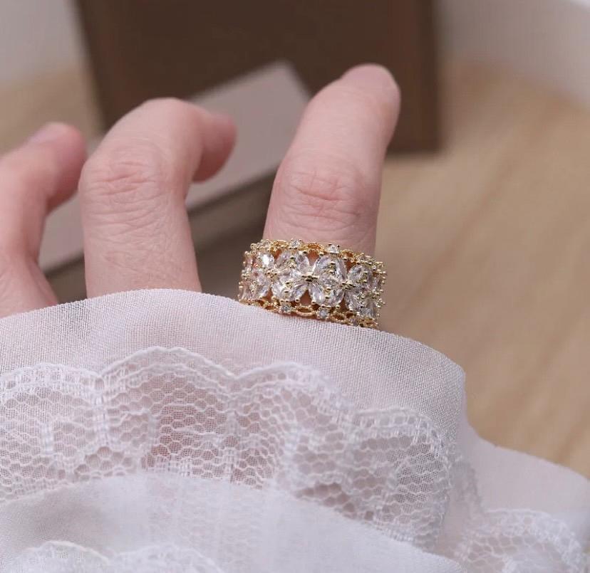 721★新品未使用★レディース ゴールドリング czダイヤモンド フラワー 花 オープン ドレス 真珠 ジュエリー アクセサリー 結婚式 ストーン
