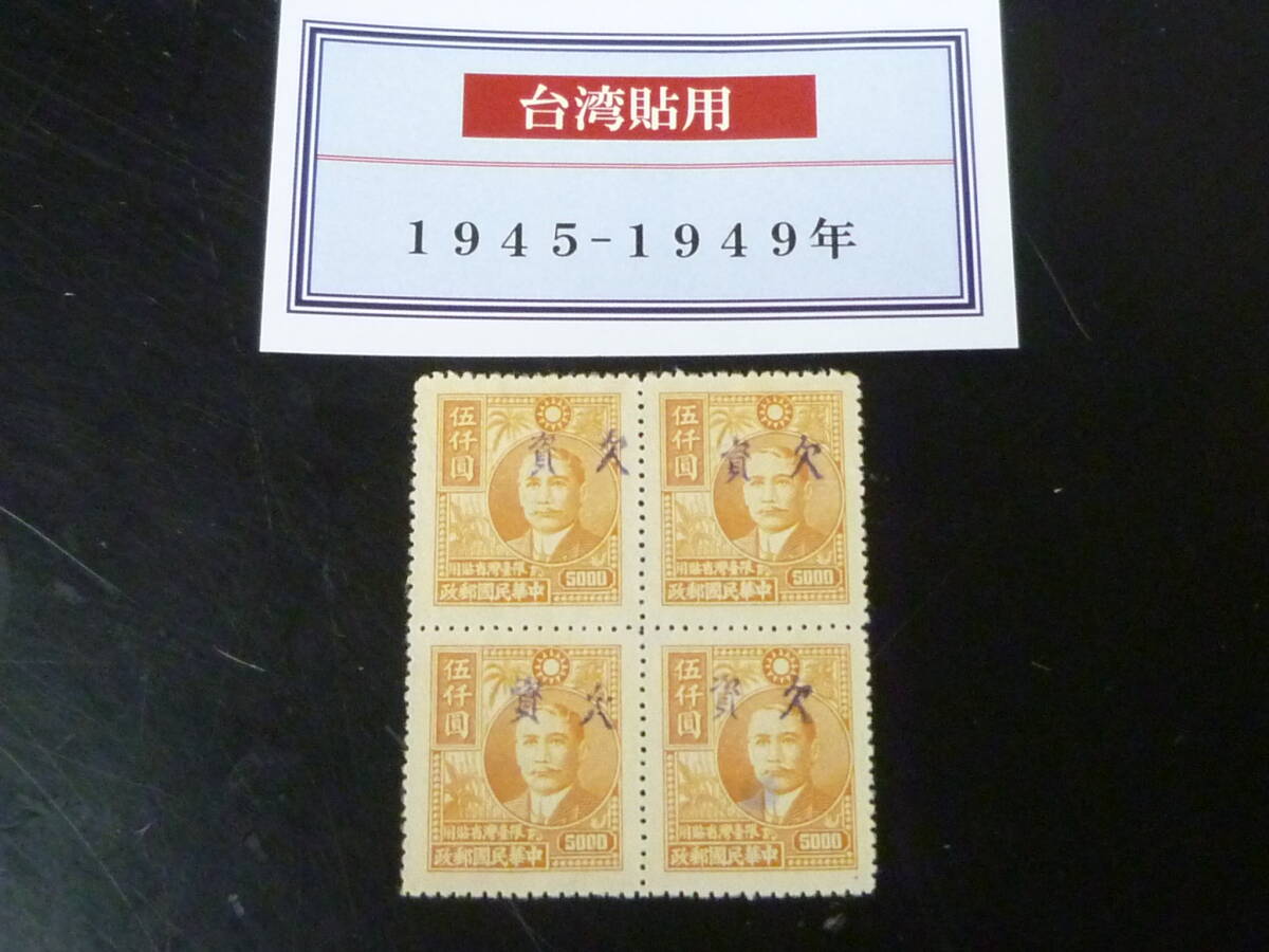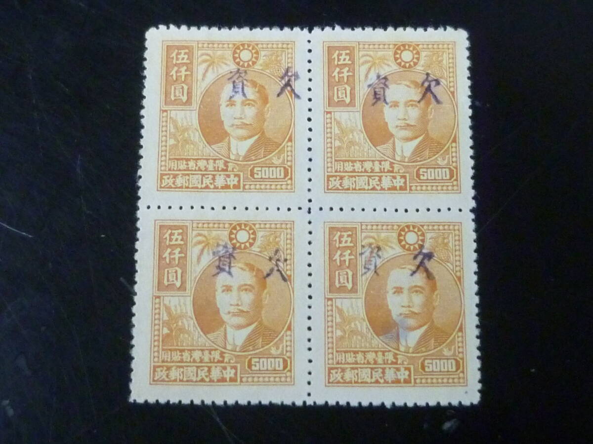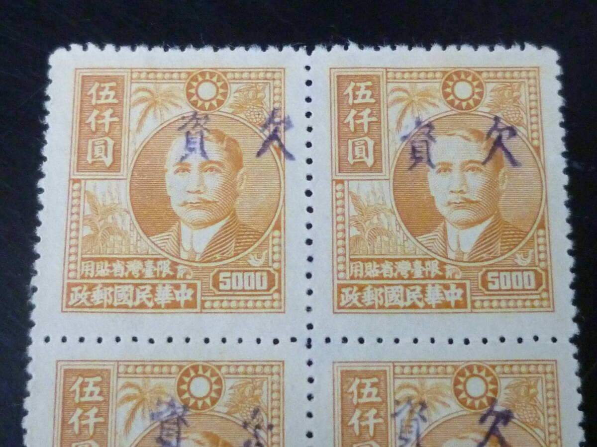 24 A №4 旧中国切手 台湾省 1949年 TW102 改作欠資 田型 $5,000 未使用NH・VF ※説明欄必読