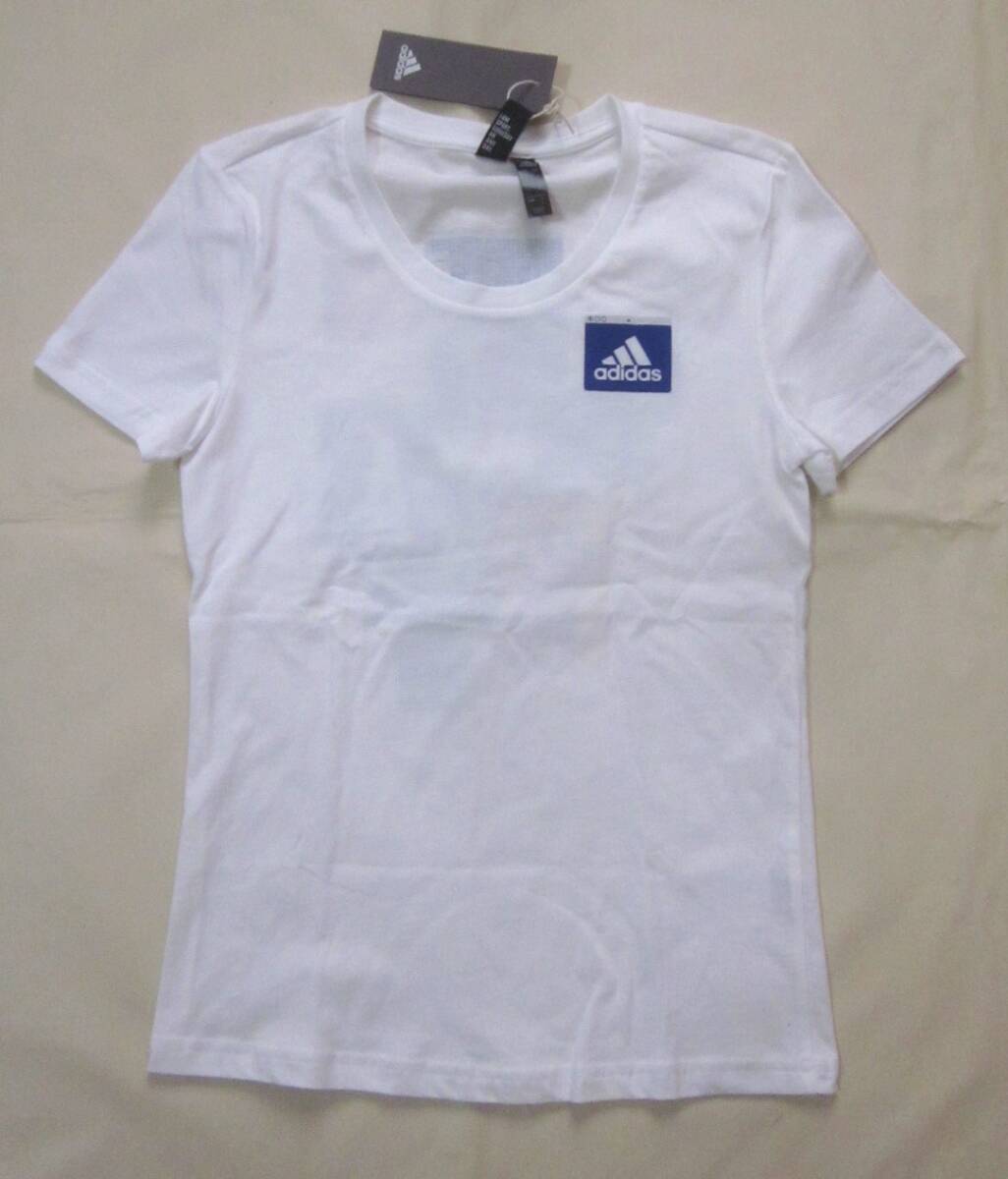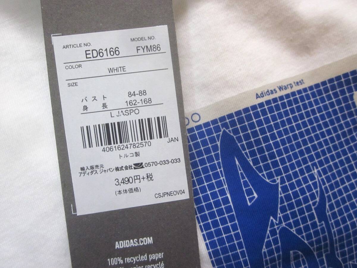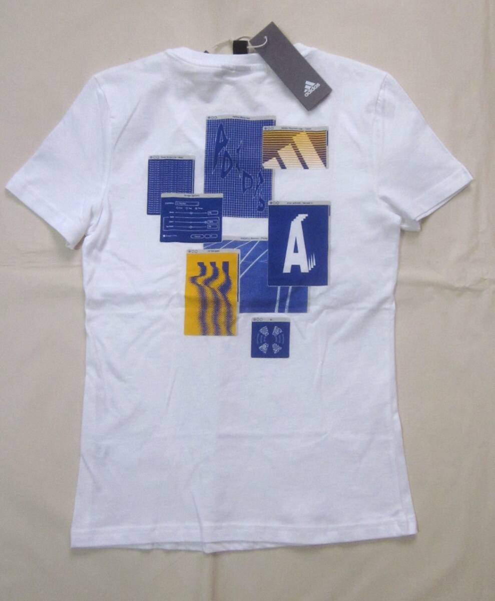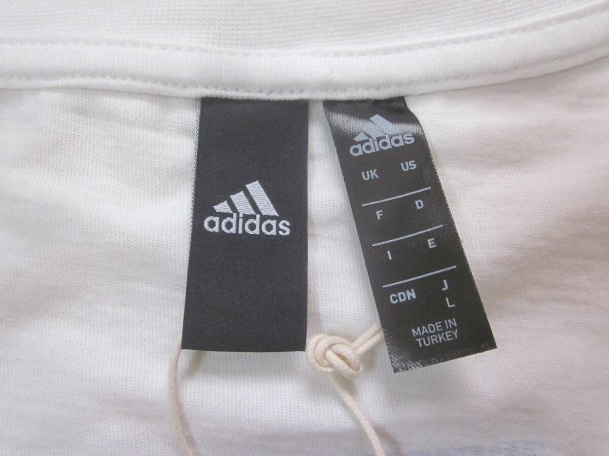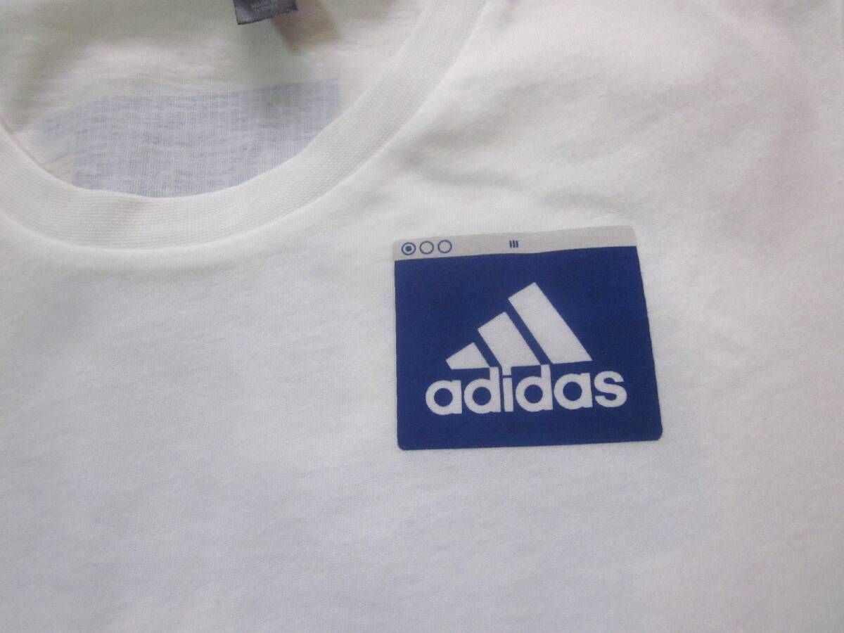 3839円タグ付き 未使用 アディダス 半袖Tシャツ adidas レディースL バックプリント 白 青黄 半T 綿 6655