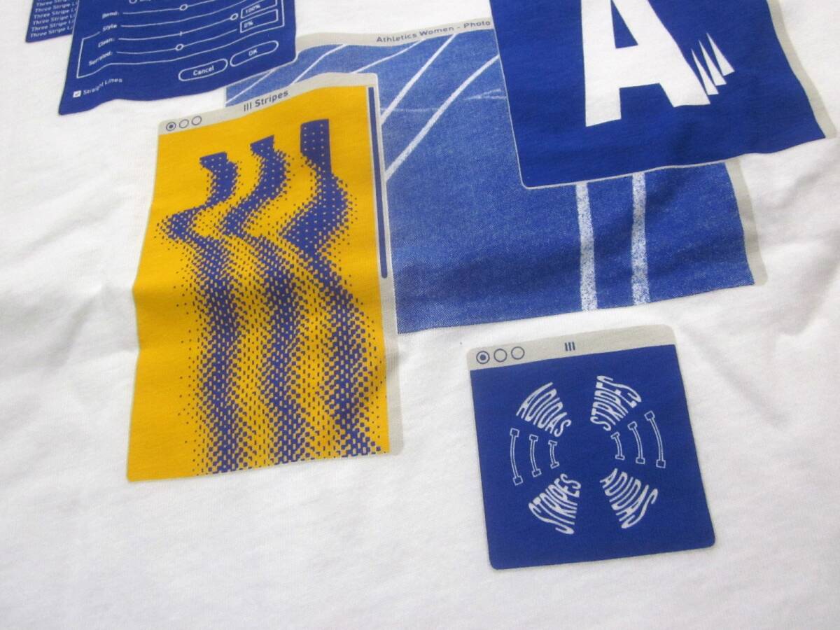 ・色 白色。バックプリント(青・黄)。ロゴ(青)。