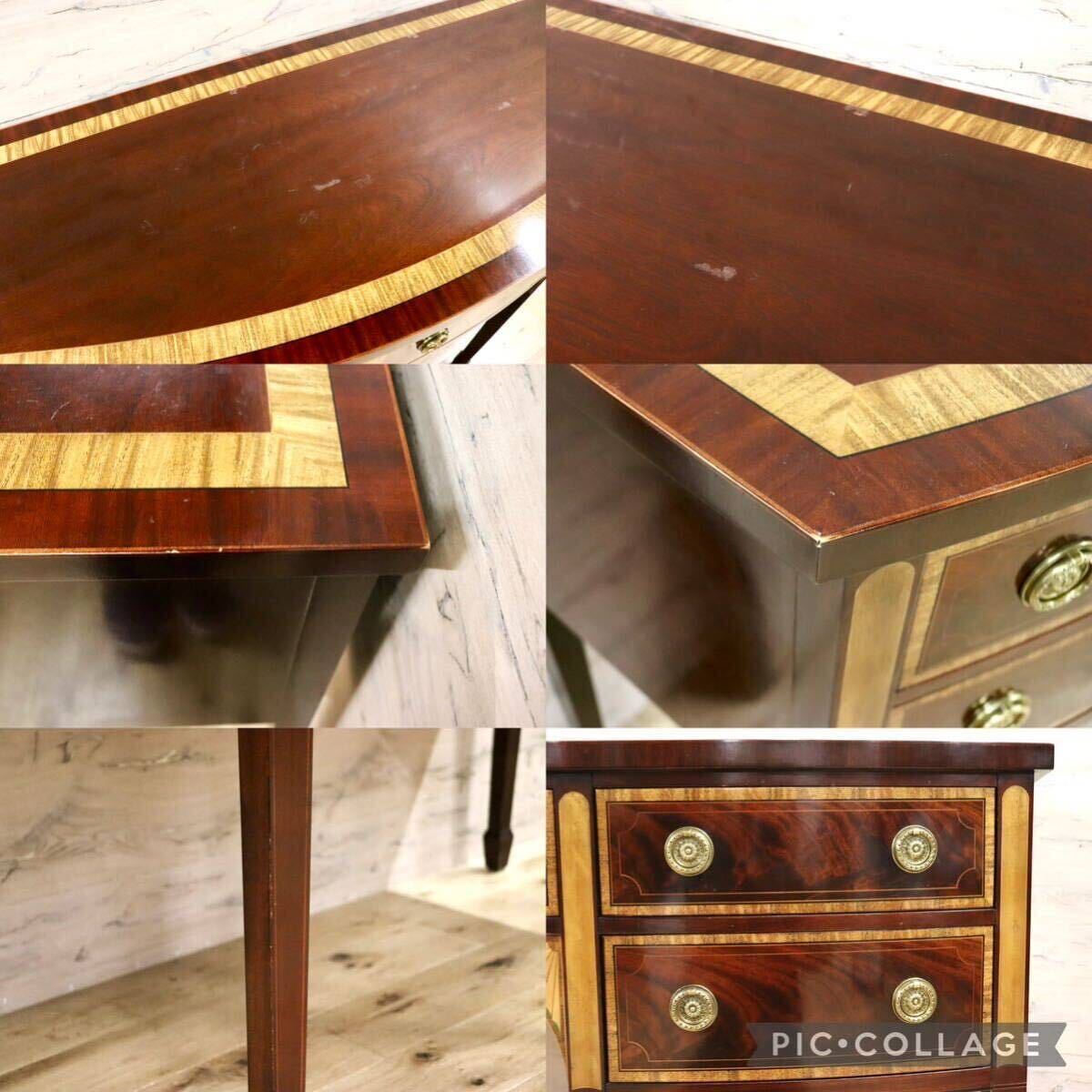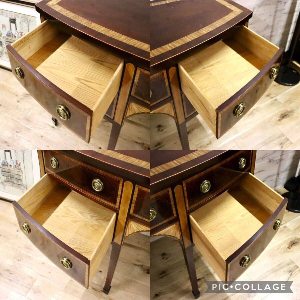 アメリカのBaker(ベーカー)の「Historic Charleston」コレクションより、最高級のマホガニーを使用したクラシックなコンソールテーブルのご紹介です。代々受け継がれるにふさわしい品質と時代を超越したスタイルとを兼ね備えた、アメリカの最高級家具ブランドのベイカー。1980年に米国ミシガン州に創立したベーカーの真髄は、貴族や富豪が愛用した実在の家具を当時のままに忠実に再現するリプロダクションコレクションに表現されています。その類稀な品質の高さは、世界中で称賛を浴びてきました。アメリカ建築の宝庫チャールストンの家具を復刻した「ヒストリック・チャールストン」シリーズ。マホガニー材をふんだんに使った、エレガントやフォーマルといった数々のスタイルがつまったチャールストン特有の、やや特異な特徴を持つリプロダクションシリーズとなっています。