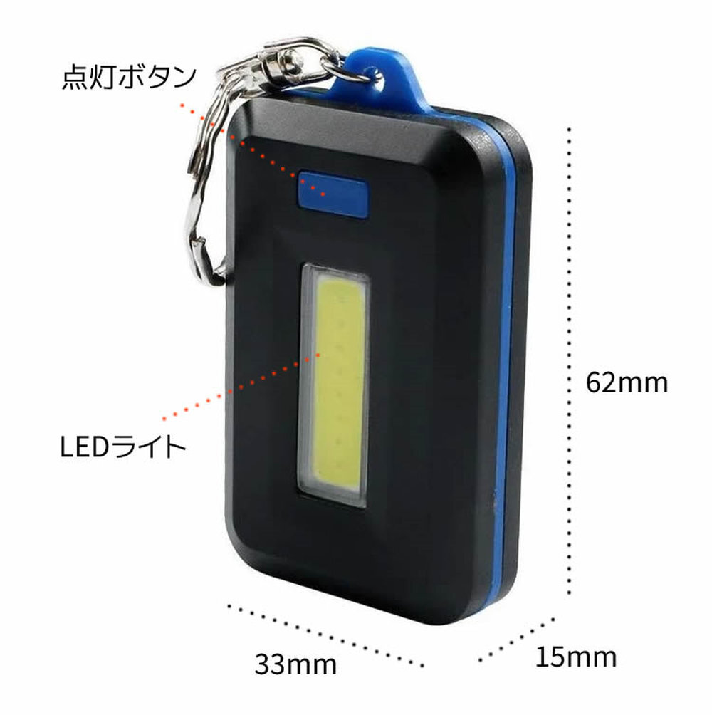 キーホルダーLEDライト COBライト 明るい SOS点灯モード カラビナ付 乾電池使用 軽量 GWKCOB303