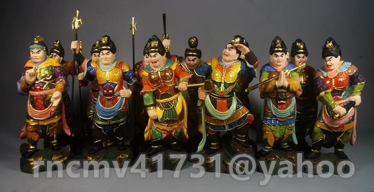 「81SHOP」 仏像 木彫り 十二神将 立像 セット 天然ツゲ木彫り 仏教美術品 黄楊 柘植 極彩色絵系 (高さ18cm×巾7cm)
