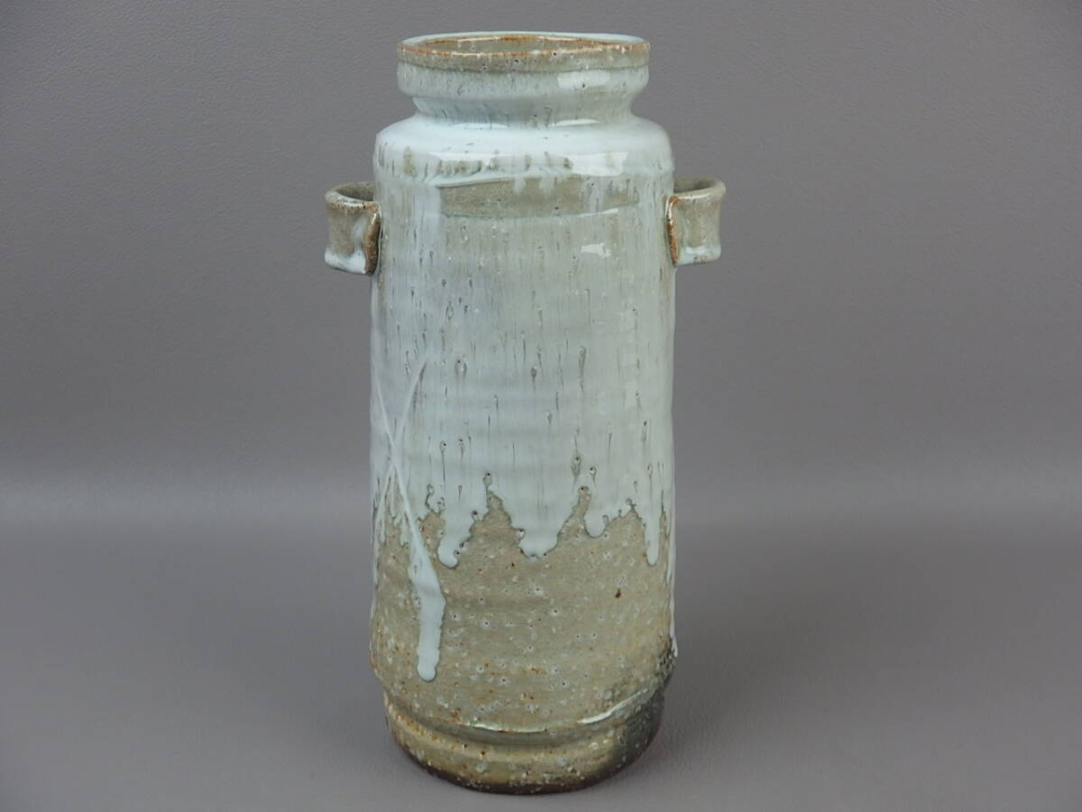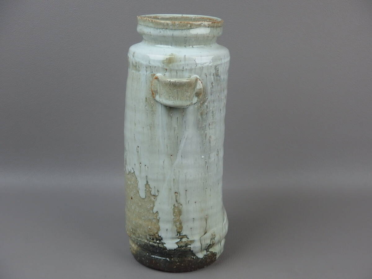 【骨董・茶道具】★萩焼 十二代 田原陶兵衛★★萩灰被耳付花入 fj072xb 花瓶 花生 花道 華道