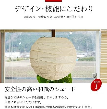 • 【安全性の高い和紙シェード】軽量な和紙シェードを使用しておりますので、安全にお使いいただけます。電球も軽量で明るいLED電球60W相当の電球をお付けいたします。
