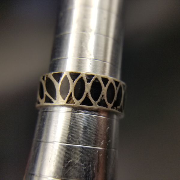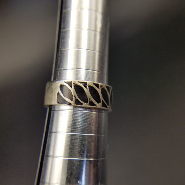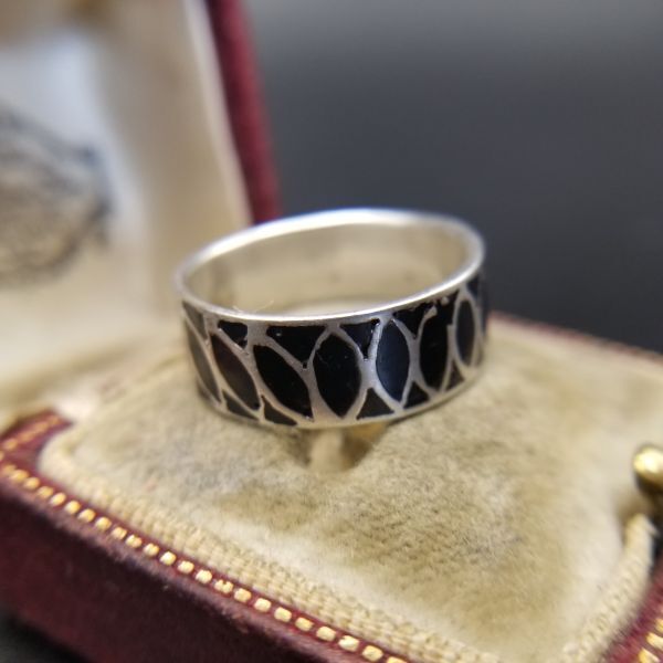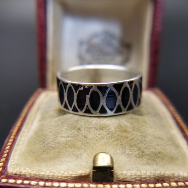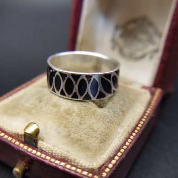 アールデコ オニキス インレイ モダニズム 925 シルバー ヴィンテージ バンドリング 銀 指輪 中太 黒石 メンズジュエリー YDI①