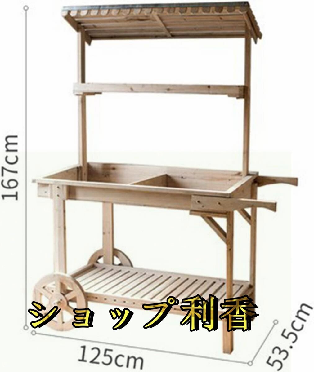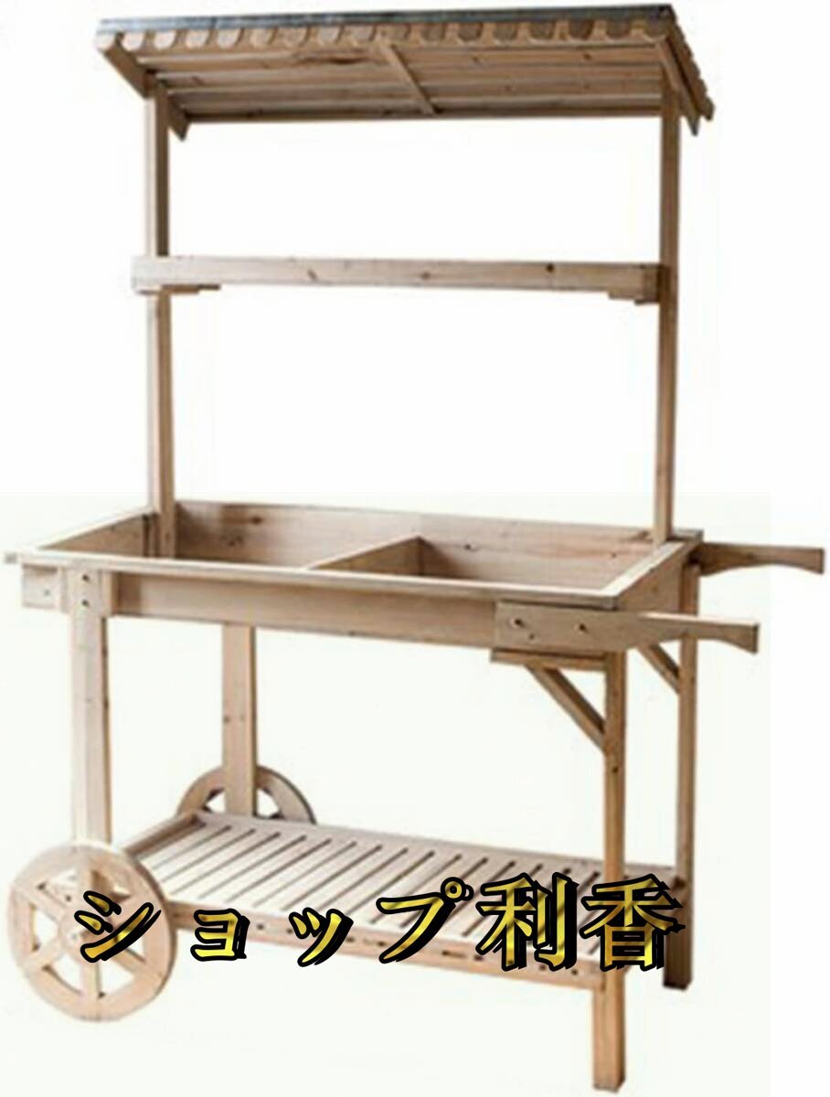 フラワーワゴン ガーデンプランターヤードプランターガーデンボックスプランター屋外の植物木製ワゴンカートフラワースタンドディスプレイ