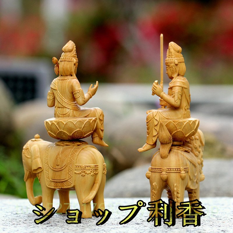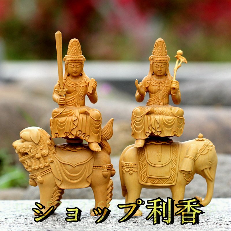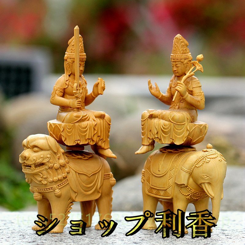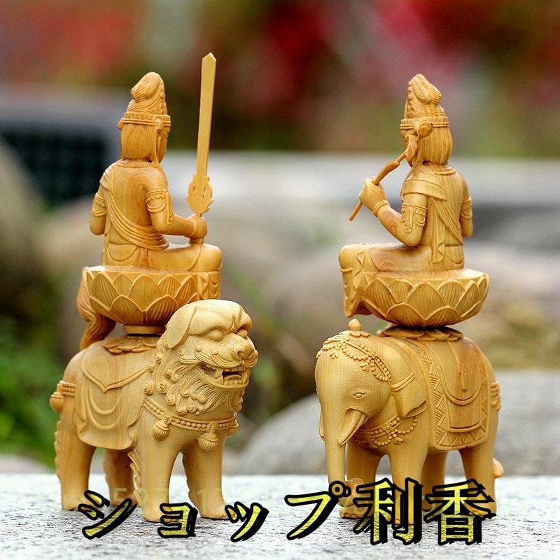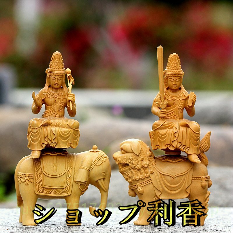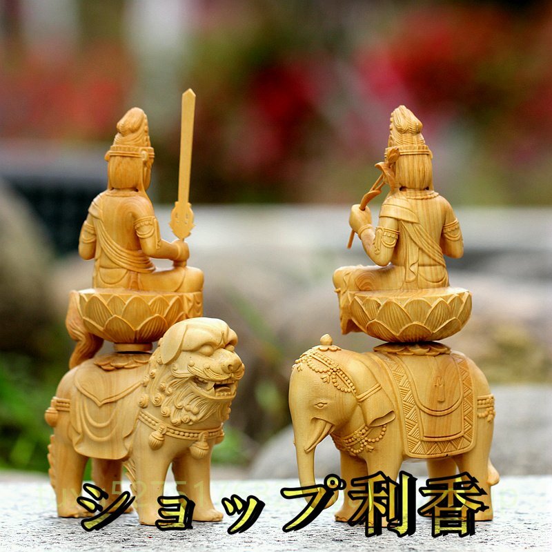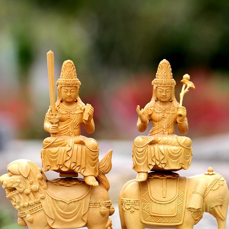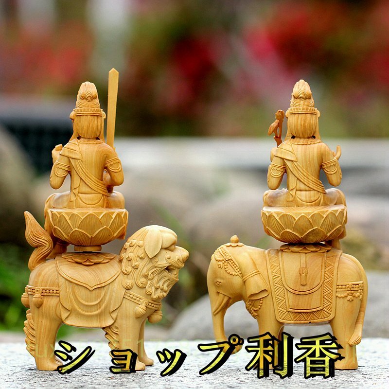 文殊菩薩 普賢菩薩 職人手作り 文殊 普賢 仏教美術 木彫仏教 仏教工芸品