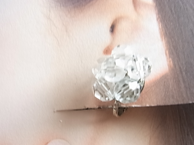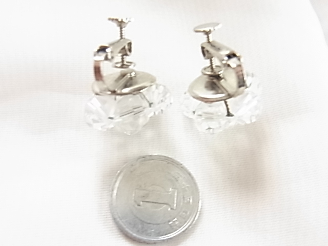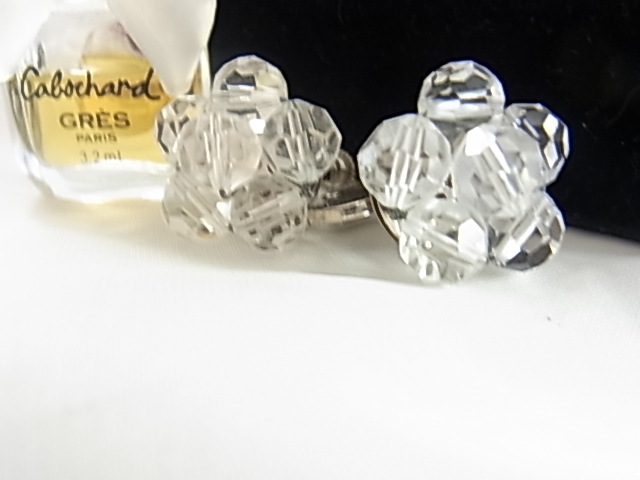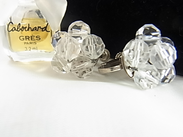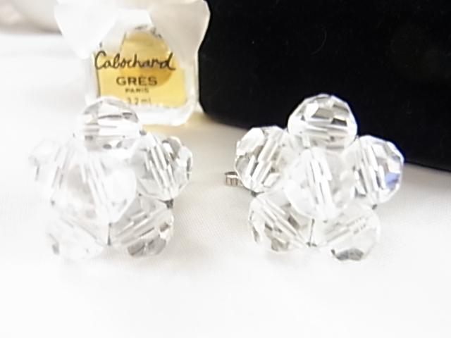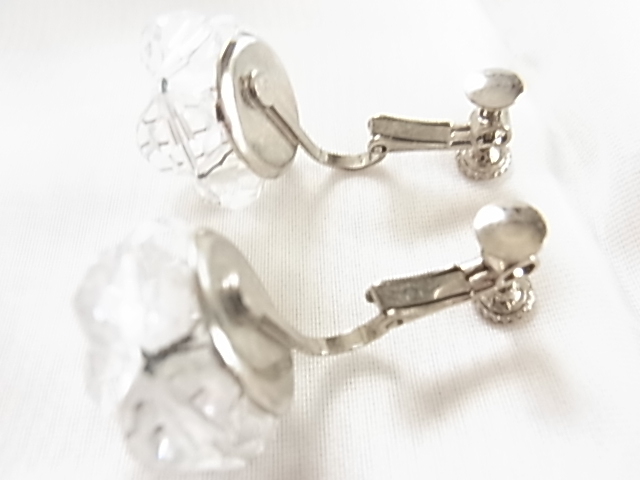ビンテージ/ヴィンテージ まるで氷のようなクリア透明感 ガラス調のビーズビジューストーンの花弁のお花デザイン フラワーイヤリング▽