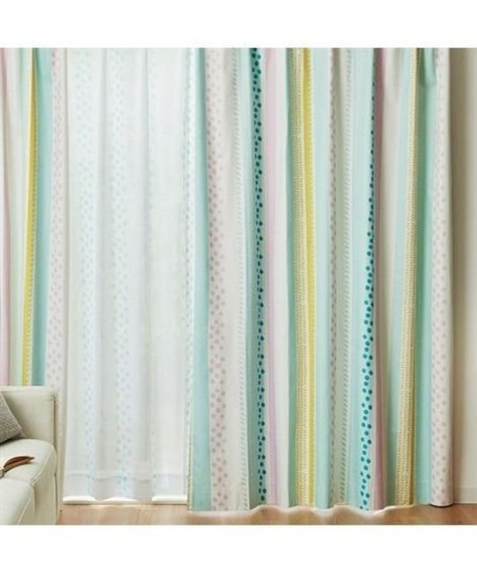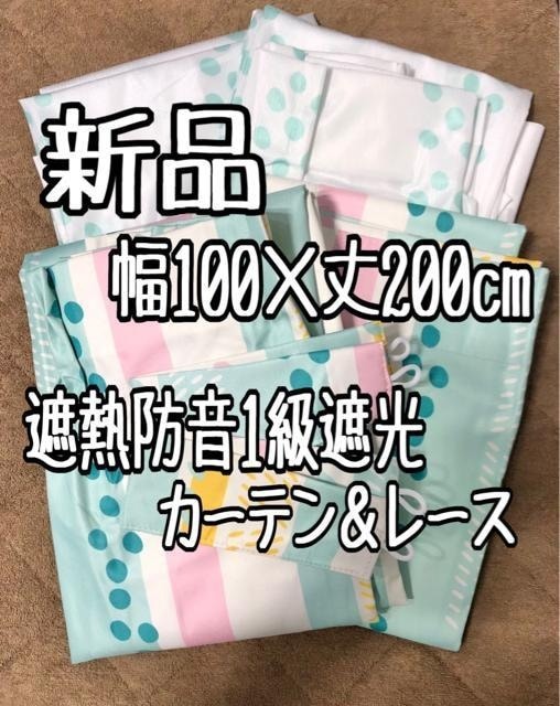 新品☆幅100×丈200㎝かわいい遮熱防音1級遮光カーテン&UVレース☆a327