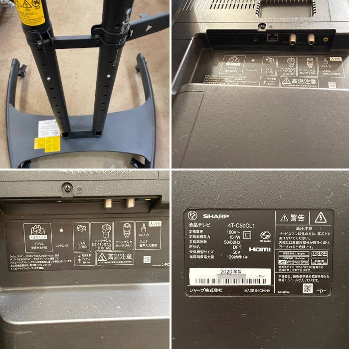 <仕様> 商 品 名 :4K液晶テレビ 50インチ メーカー:SHARP シャープ 型 番:4T-C50CL1 年 式:2020年 寸 法:約 幅 1,130mm × 奥行 720mm × 高さ 1,940mm 重 量:約 25kg 電 源:100V 50/60Hz 付 属 品 :写真に掲載されているものが全てとなります。 <動作確認> ・地デジを受信する事を確認しました。 ・リモコンの反応を確認しました。 ※全ての機能は確認できておりません。 ※電池は消耗品のため初期不良対応対象外です。 <状態> ・キズ、汚れがあります。 ・画面にキズがあります。 |