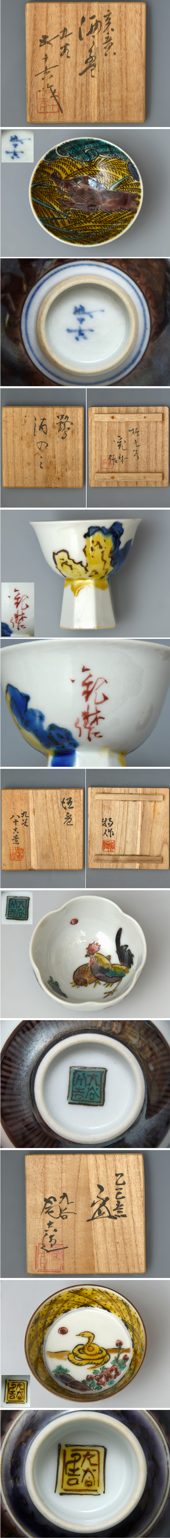 九谷酒器 まとめて4点です。 浅蔵五十吉、徳永観林、徳田八十吉と三ツ井為吉の作品です。 全て共箱付属、それぞれに銘あり。 未使用品ではございませんが、ホツや汚れなどなく状態は良好です。 ※予めご了承の上ご入札お待ちしております。 ※撮影の際に生じた写り込みなどがございます。 ご理解の程よろしくお願い致します。 |