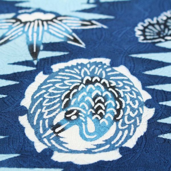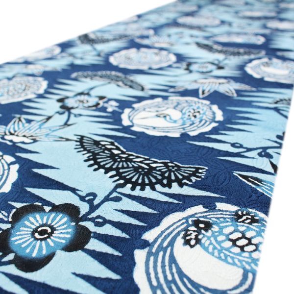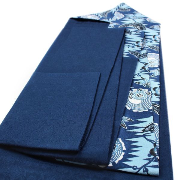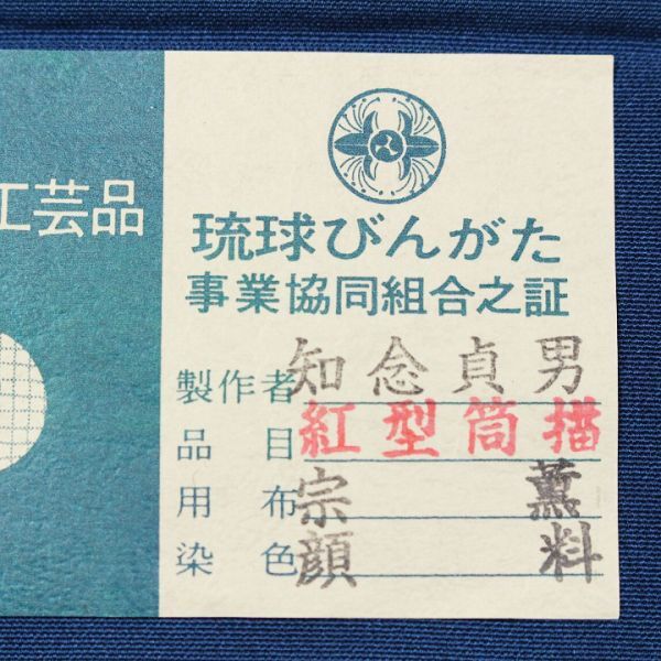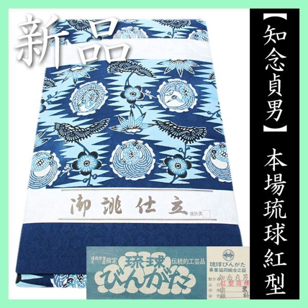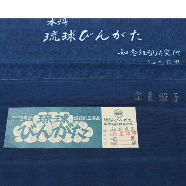 美ら海と青い空、輝く太陽、木々の深い緑、色鮮やかな花々… 悠久の時を経て愛され続ける【琉球びんがた染】は、南国沖縄の雄大な自然をそのまま写したかのような染織技法です。 自然の色彩を原料に、一つ一つ手作業によって生まれる美しい色合いの本紅型は、多くのお着物ファンの心を魅了して止みません。 まず完成した図案から、型紙を作り、シーグと呼ばれる小刀で紙を突きながら型彫りします。 その後、布に型紙を重ね、糊を置いていく型置、顔料による色差し、さらに濃い色を柄の一部に重ねて、柄を立体的に見せる隅取りといった工程が続きます。 これらの工程がすべて手作業によって行われ、完成には匠の技を持つ職人さんの途方もない手間暇が掛けられますが、その分、美しくも色鮮やかな仕上がりとなるのです。 沖縄が世界に誇る美しい染色美術品【琉球本紅型】による、九寸名古屋帯を入荷することができました。 大人気色『白』と『藍』を基調とした、滅多にお目に掛かることのない希少な【藍型】の作品です。 紅型は琉球王朝の保護下で、王朝お抱えの絵師が図案を描き、彫り師が型紙を彫り、それを紅型三宗家と言われる『城間家』『知念家』『沢岻家』を中心とした紺屋が染める形態で首里を中心に生産されていました。 こちらの帯を制作された【知念貞男】さんは『紅型三宗家』の一つ、知念家の八代目としてご活躍され、琉球びんがた事業共同組合理事長をはじめ、日本工芸会の正会員にもなられた名匠です。 艶やかな光沢を湛えた【宗薫緞子】という高価な絹布には『松竹梅』や『鶴亀』など、クラシカルなお柄がモダンにあしらわれて…。 その上こちらの作品は383cmという【長尺】でのお作りの上、一度もお締めになられていない【未使用品】 お気に入りの小紋や紬など、カジュアルなお着物とのコーディネートで特別な際のお出掛け着として…。 また花織や久米島紬、琉球絣や大島紬などと合わせて頂き、南国の装い”をお楽しみ頂くのもオススメです。 お出掛けされる先々で羨望の眼差しが向けられる、《最高級の染織美術作品》を身にまとう悦び… ぜひこの機会に心ゆくまでご堪能下さい。 |