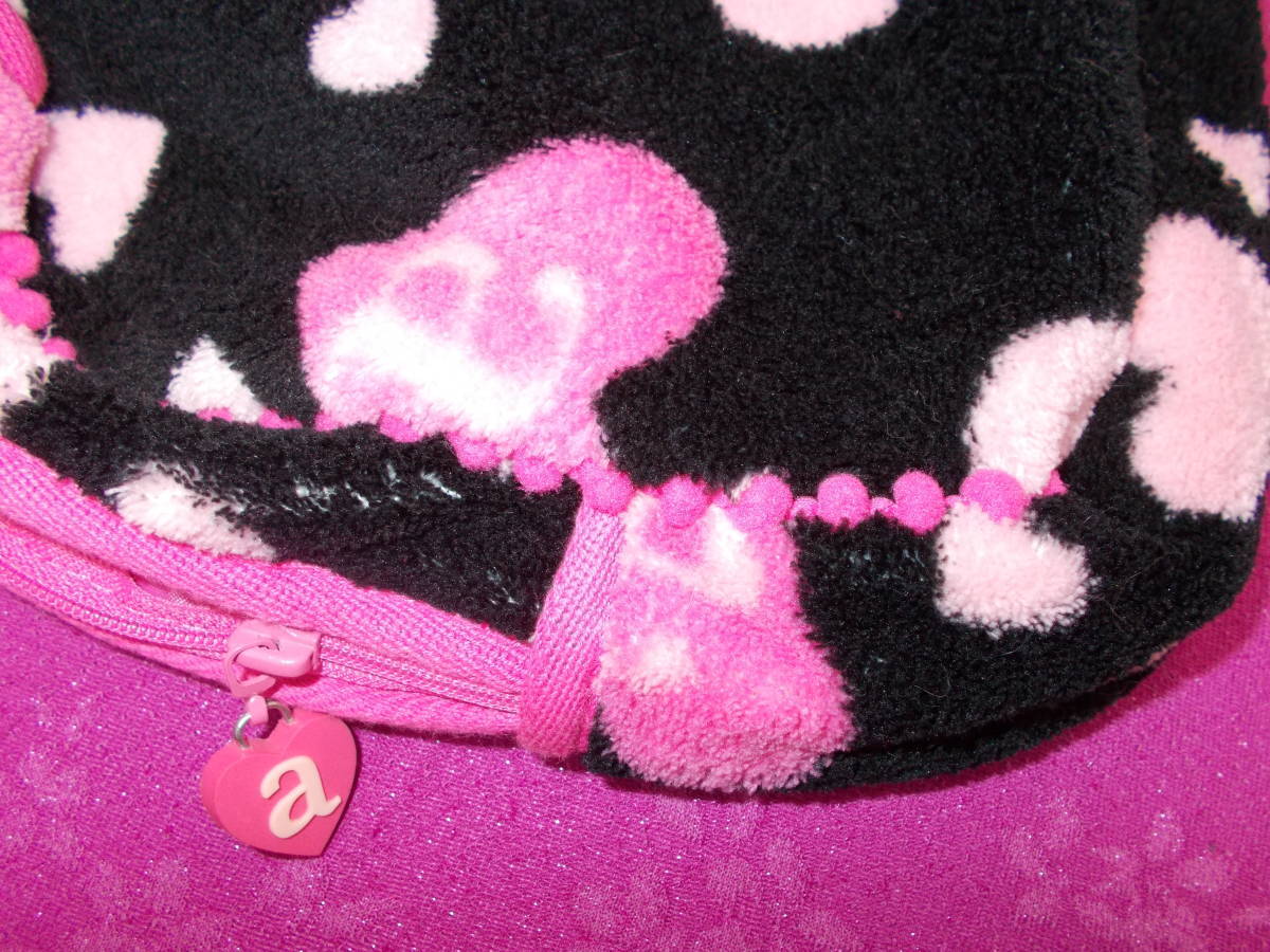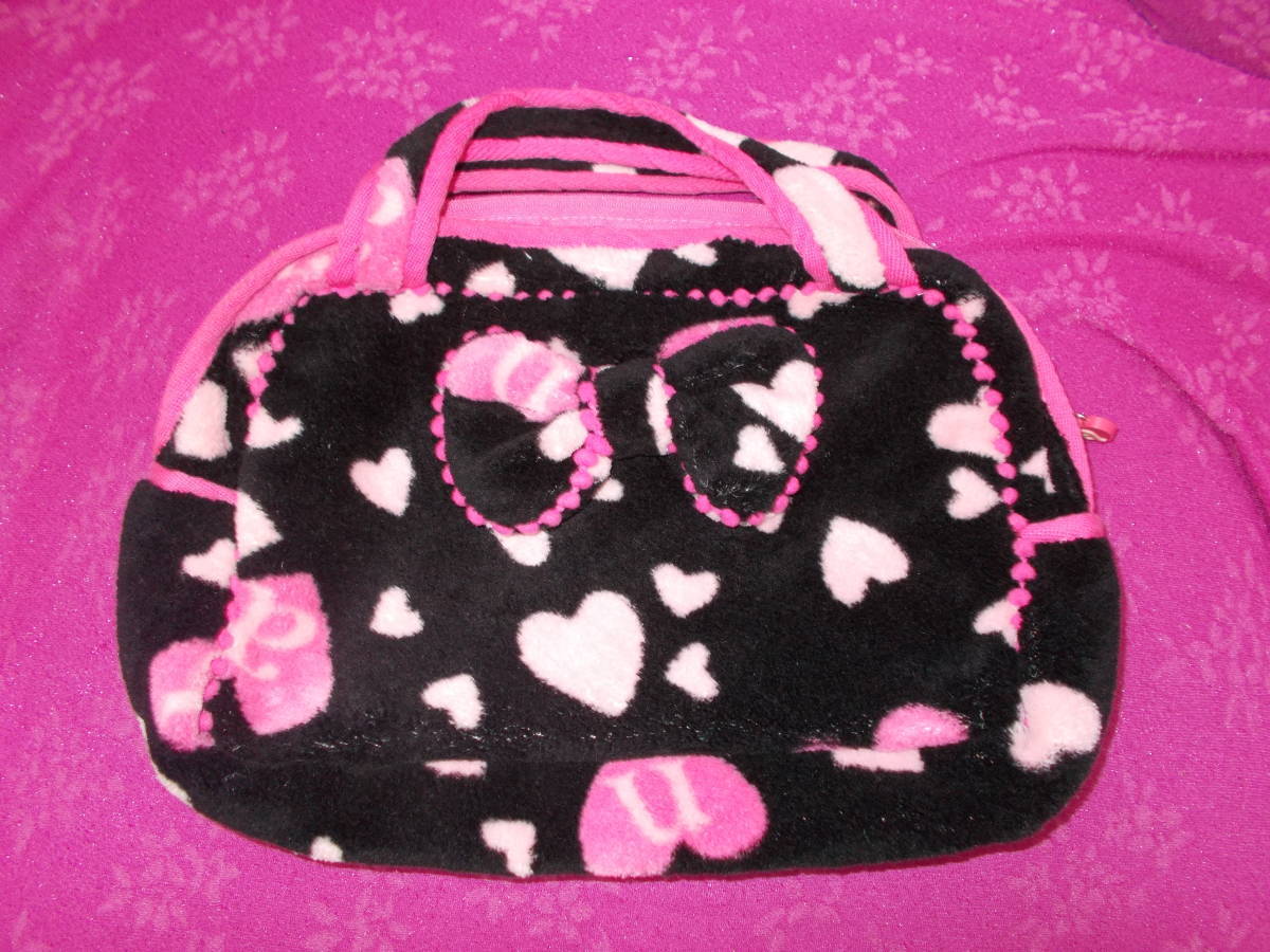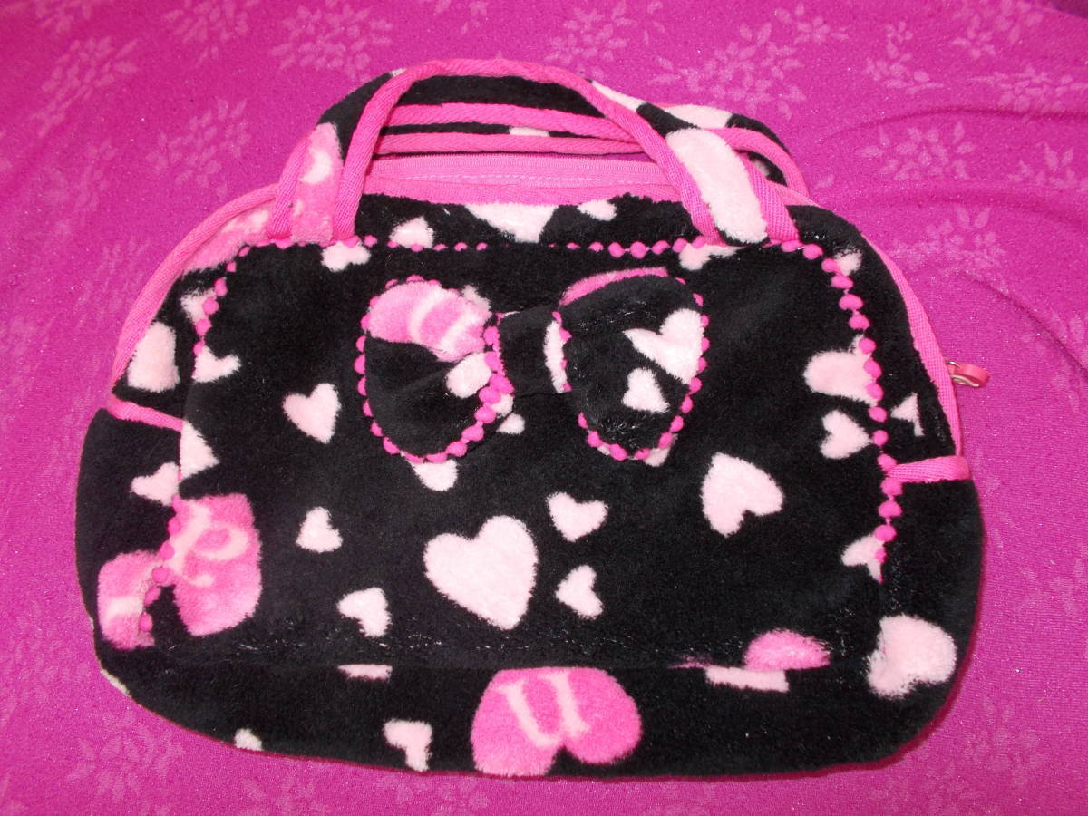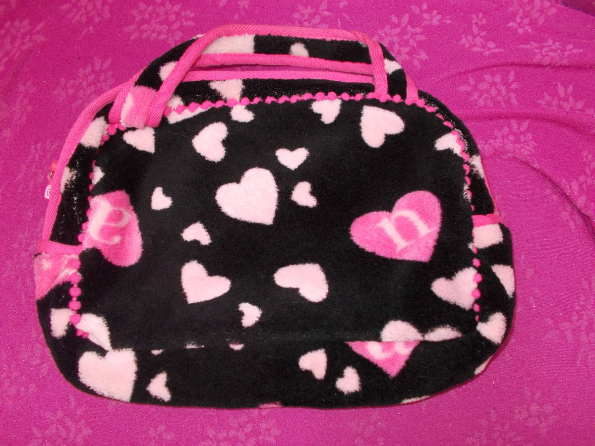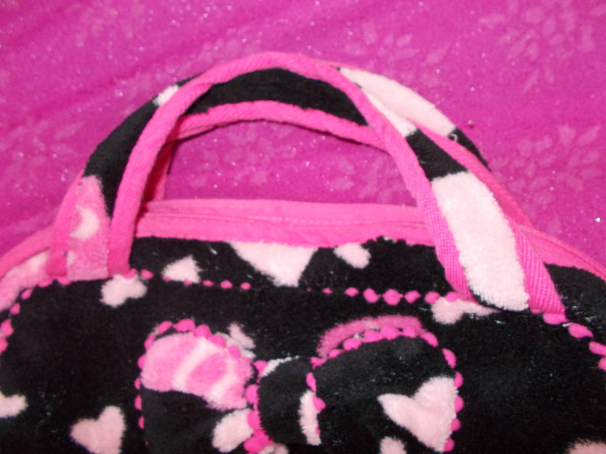 ボアー・フリース素材で秋・冬向きでハートが沢山付いていてカワイイリボン付きのバックになります。
