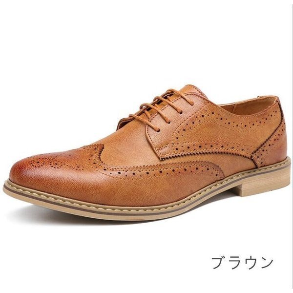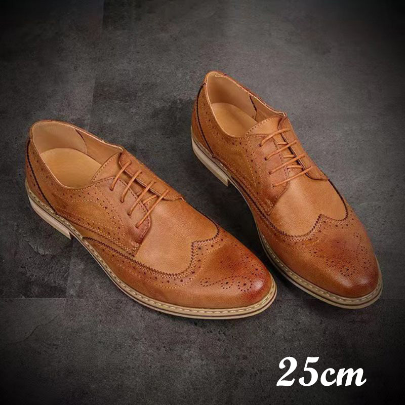 ウイングチップシューズ メンズ メダリオン メンズシューズ トラッド スエード調 大人 きれいめ ブラウン 25cm