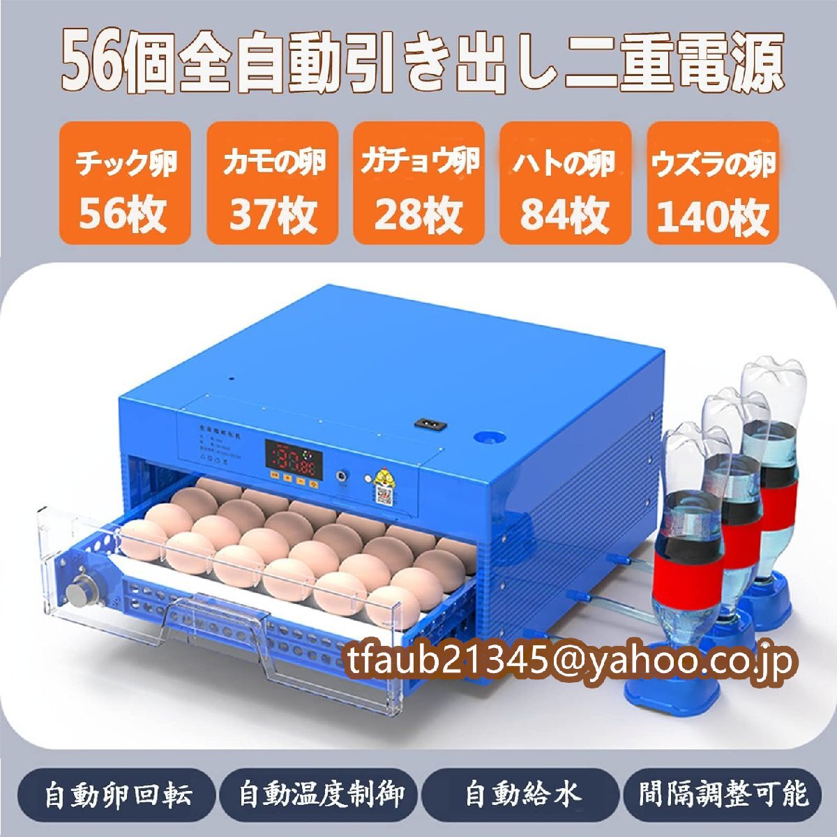 全自動孵卵器 56卵 インキュベーター 大容量 照卵器付き デジタル表示 自動給水式 自動温度制 湿度保持 鶏など家畜 家禽 鳥類専用 孵化器