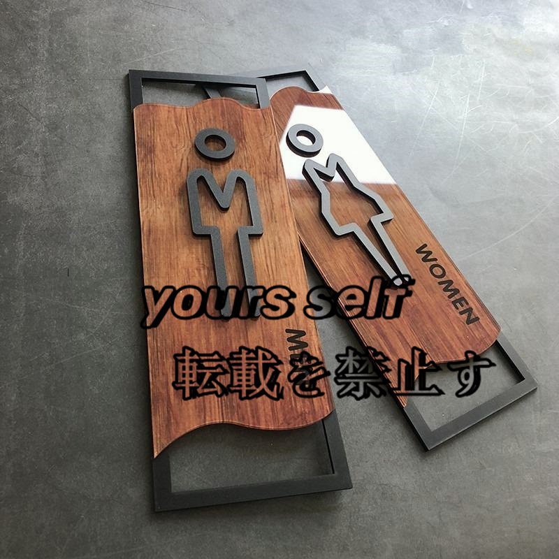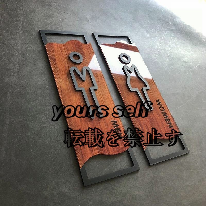 トイレのプレート トイレ表札 木製 レトロ モダン ドアステッカー 壁面 WC ドアプレート おしゃれ トイレマーク トイレ 表示 看板