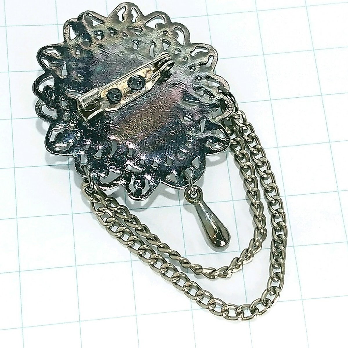 送料無料)ビンテージ☆ブラックストーン チェーンエンブレム☆アンティーク ブローチ A23853