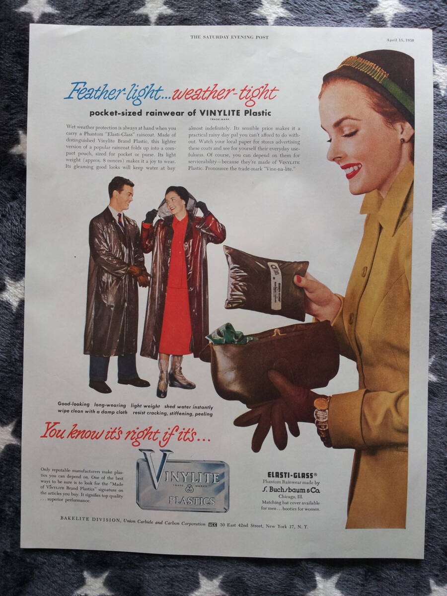 i即決【mid-century advertising/LIFE/POST/広告347】VINYLITE PLASTICS/レインコート//ミッドセンチュリー/アメリカンカルチャー