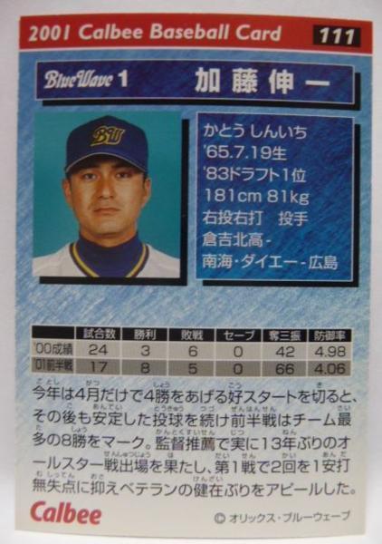 カルビープロ野球カード2001年#111【加藤 伸一(オリックス ブルーウェーブ)】平成13年チップスおまけ食玩トレーディングカード(中古)送料込