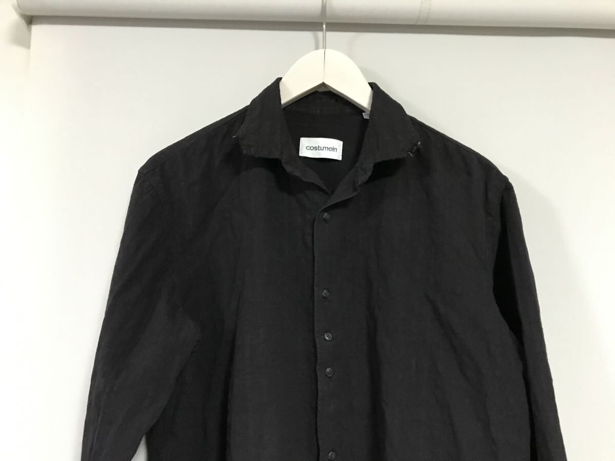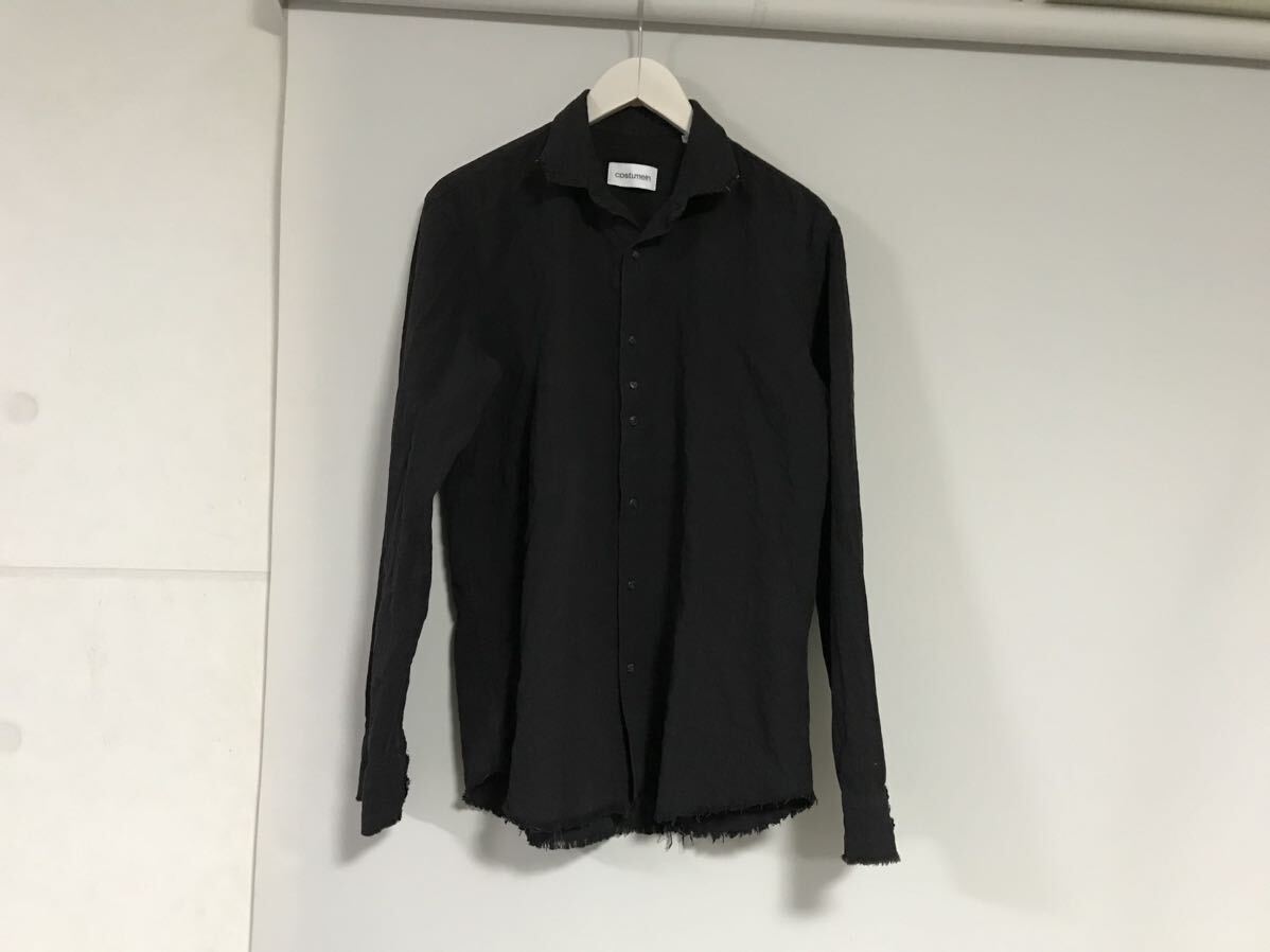 商品名:本物コストメインcostumeinコットンウール長袖シャツサーフミリタリーアメカジビジネススーツメンズ黒ブラック48イタリア製L