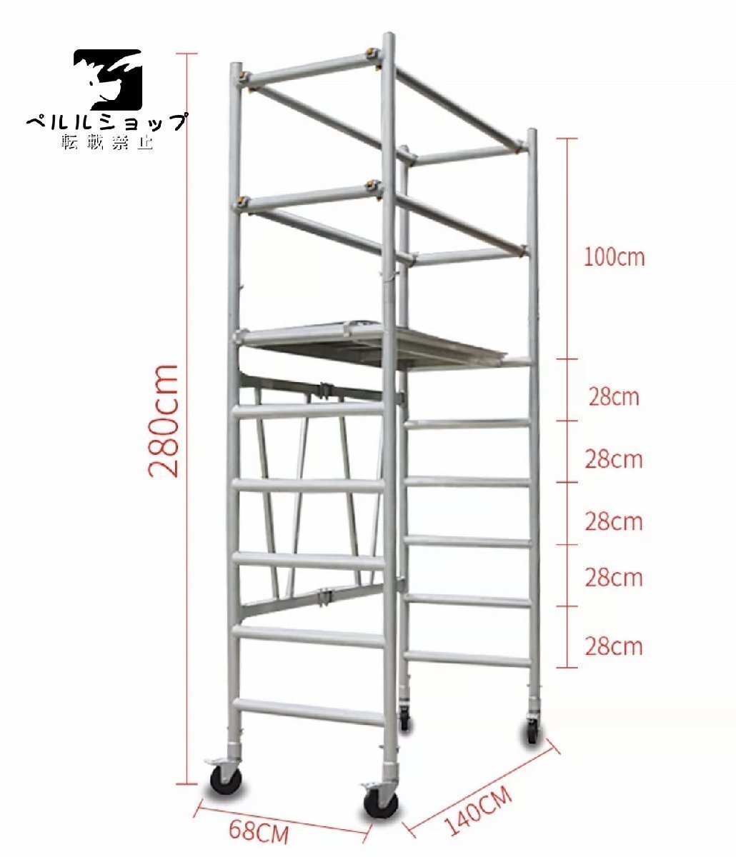 強力推薦★ 140*68*280cm 折り畳み式 アルミ合金 足場 移動 工事 装飾 登る梯子 プラットフォーム 昇降できる