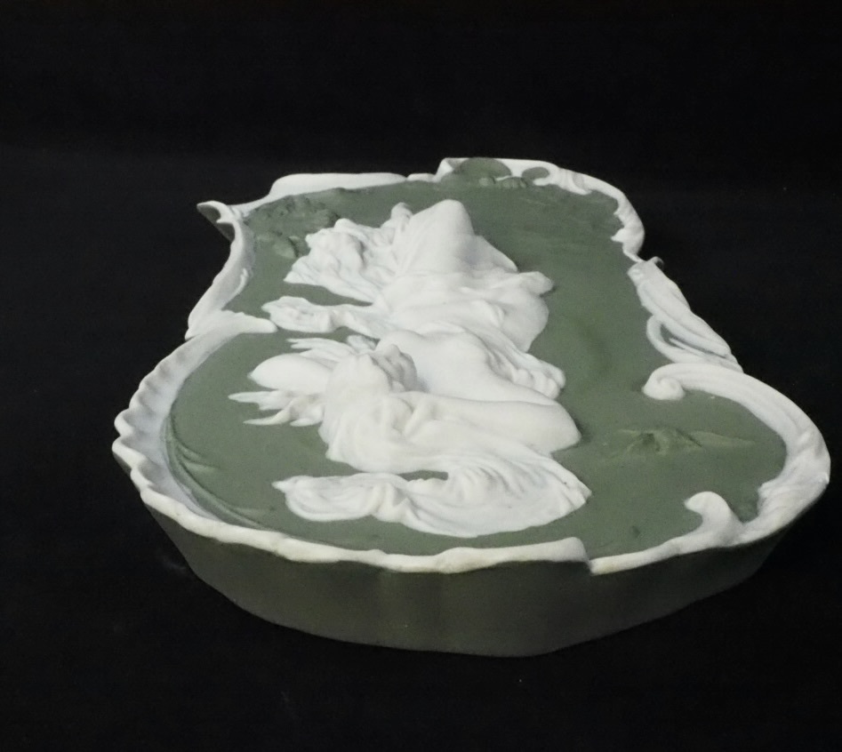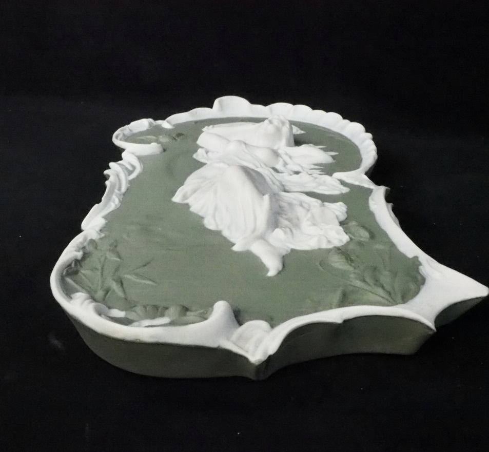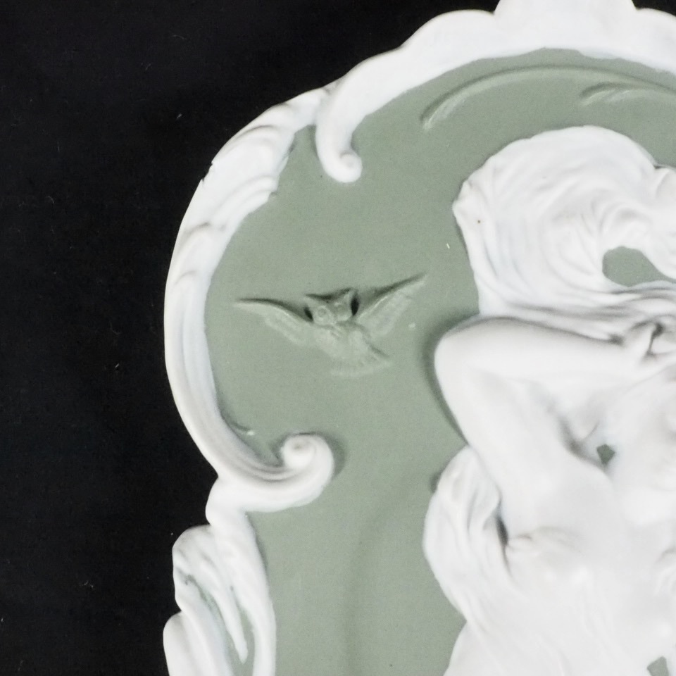ヨーロッパビンテージ 陶器製レリーフ グリーン ウォールインテリア 壁掛け 雑貨 高さ30㎝ 女性像のレリーフが美しい小ぶりな壁飾り ATN
