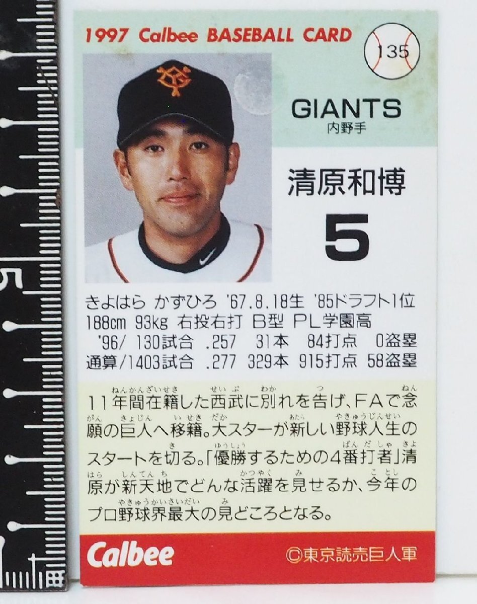 97年 カルビー プロ野球カード 135【清原 和博 内野手 読売ジャイアンツ巨人】平成9年 1997年 当時物 Calbeeおまけ食玩BASEBALL【中古】
