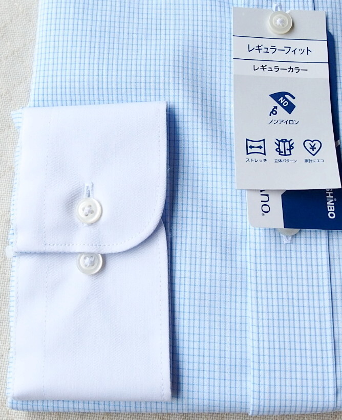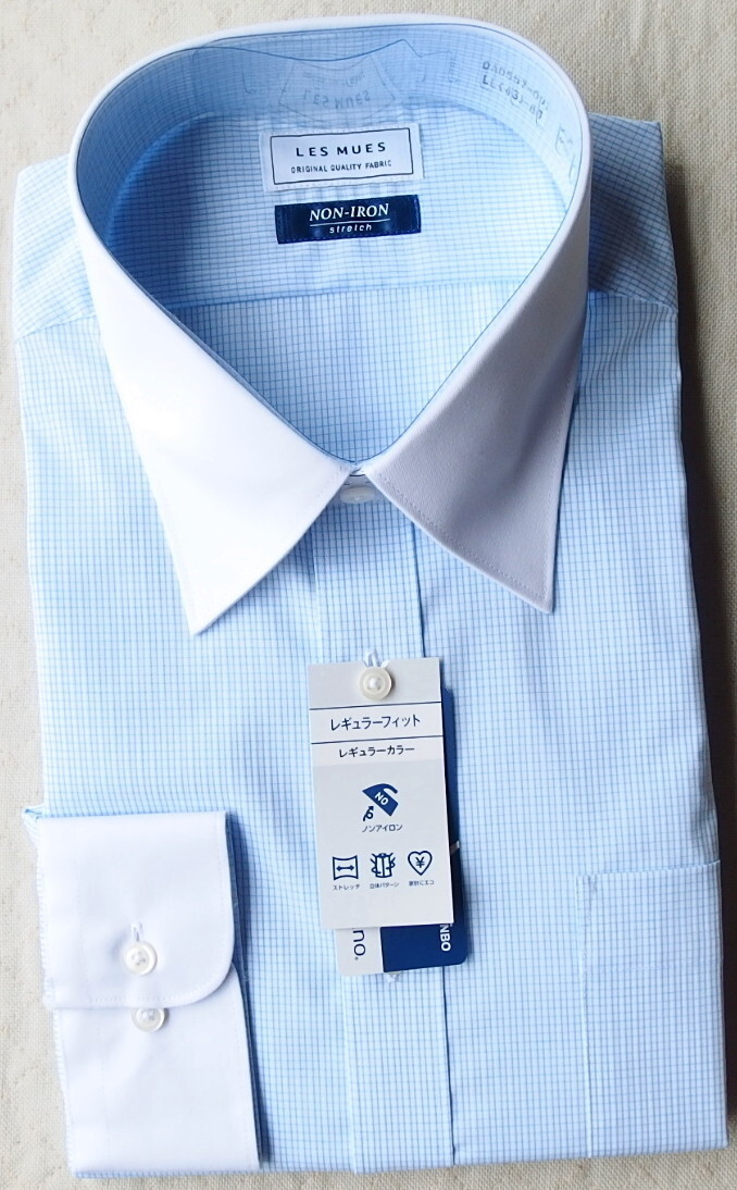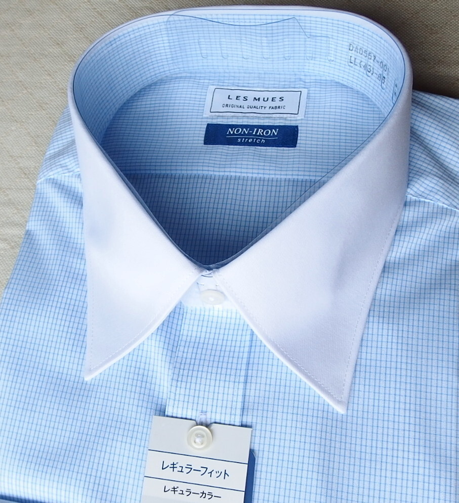 紙タグには「レギュラーカラー」とありますが、当方の私見ではセミワイドカラーです。