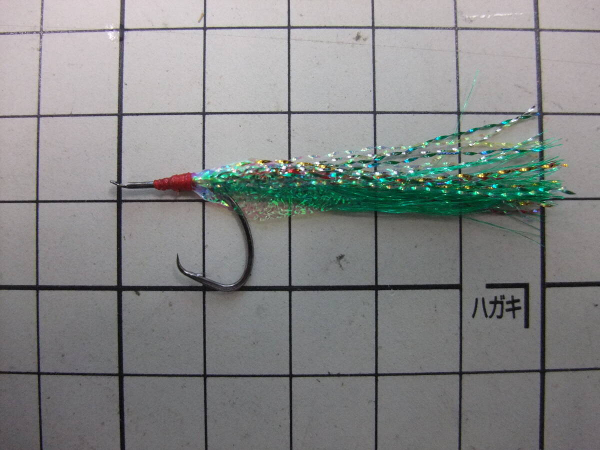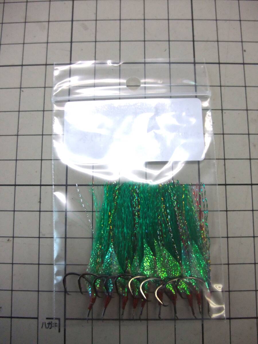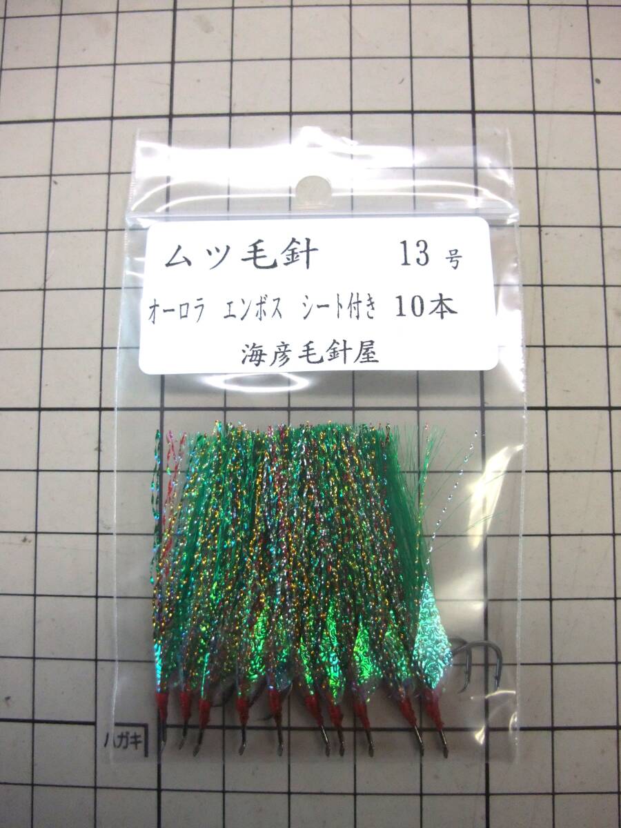 13MOE ムツ13号毛針 緑フラッシャー オーロラエンボスシート付き 10本セット