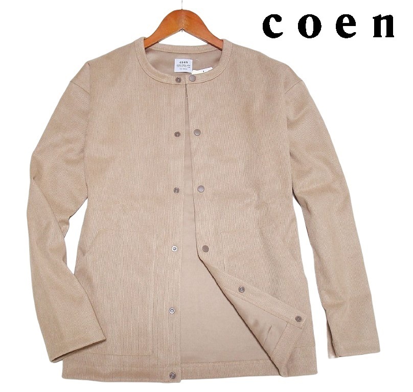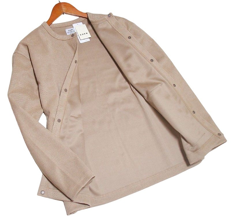 新品!! コーエン coen スエード調 クルーネック ジャケット カーディガン ベージュ (L) ☆ ユナイテッドアローズ ゆったり 春秋 ★
