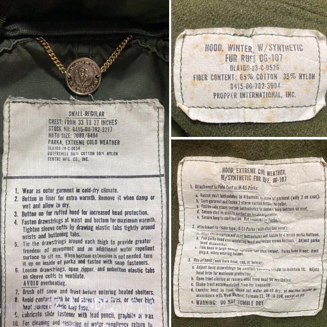 【素材】COTTON80%・NYLON20% CHINESE RACCOON  *軍のタグは、シェルが50%COTTON・50%NYLON、フードが65%COTTON・35%NYLONになっています。