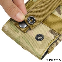 実際に軍隊用装備品にも取り入れられるモールシステム仕様で、背面のストラップを使ってPALSウェビングと呼ばれるバンドに固定できます。